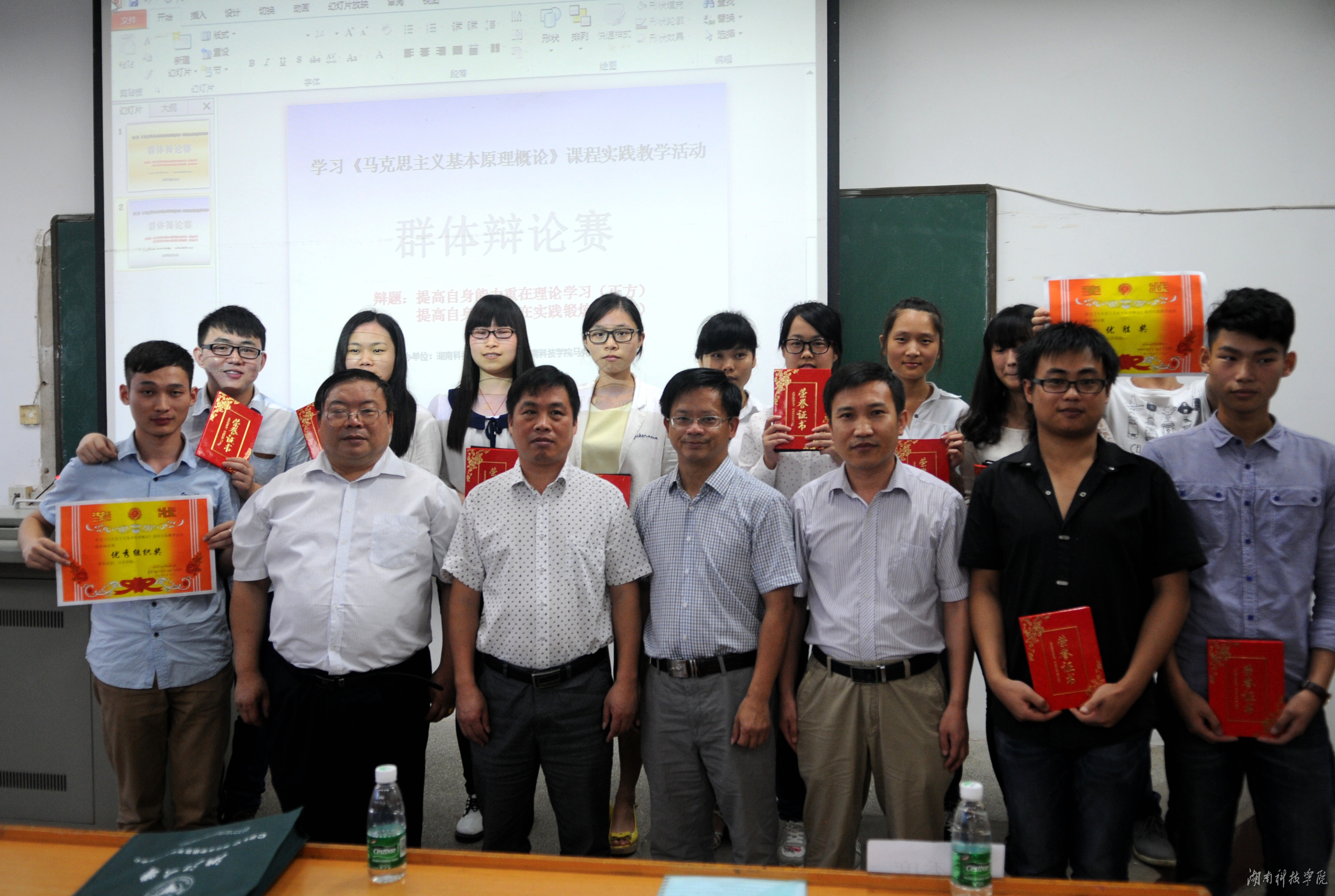 马克思主义基本原理概论教学部主任姚从军博士对同学们的表现进行点评并传授辩论技巧。“没有强制的作业要求,学生们也一样认真准备了大量的材料。没有课堂形式的局限,台上台下也一样全身心关注投入到课堂之中。新颖的课型增加了同学们的学习乐趣,帮助他们突破学习中的重点、难点问题,引导他们在学习中树立正确的世界观、人生观、价值观。同时有助于学生辩证思维能力、动手实践能力、语言表达能力、合作学习能力等的增长。”此次辩论赛指导老师邹明洪教授在总结中说。
