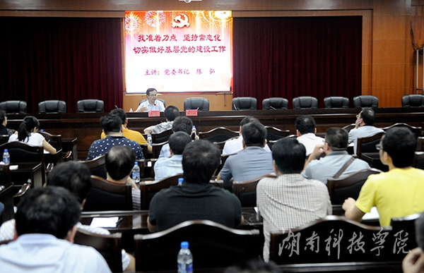 陈弘要求广大党员干部做党建基础的夯实者、法制校园的建设者、大学精神的守望者、职工队伍的凝结者、改革发展的推动者。他指出,基层党组织在开展教育培训等活动和工作中必须要有明确的制度,切实做到有章可循,同时也要注重激活党组织内在的活力,开展党内创新工作,营造出争先进、创优秀的良好氛围。陈弘还领读了《中国共产党普通高等学校基层组织工作条例》中对基层党组织提出的明确要求,他要求各级党组织抓好制度建设、定好年度工作目标和计划,定期开展党组织活动,建立检查考核评比体系。