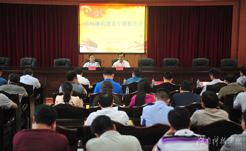 本网讯(记者 许剑桥 乐为 摄影 秦峰)5月15日上午,省纪委委员、省纪委第四纪检监察室主任彭龙祥莅临我校指导工作,并为我校全体中层以上领导干部作题为“切实加快落实‘两个责任’,聚焦反腐主业,齐心合力推进省属高校反腐倡廉建设”的专题报告。