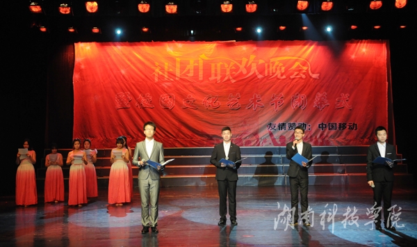 本网讯(记者 黄丽丽 实习记者 王翩翩 胡翠芳 张家宁 摄影 何帅文 )1月5日晚,音乐厅内座无虚席,欢声雷动。以“你我蜕变之旅,演绎科院风采”为主题的2015年社团联欢晚会暨校园文化艺术节闭幕式社团联欢晚会圆满落幕。校领导陈弘、曾宝成、宋宏福、彭立威、李常健、袁先友出席观看晚会。