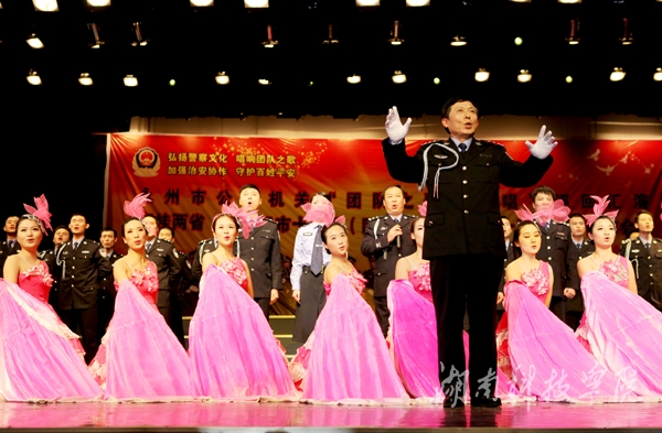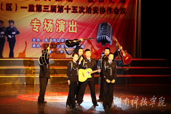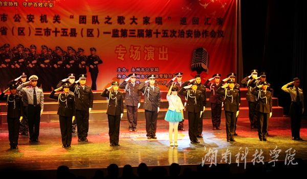 本网讯(记者 李东泼 邓梦妮)“弘扬警察文化,唱响团队之歌;加强治安协作,守护百姓平安”。12月11日晚,由永州市公安局主办,零陵分局承办的永州市公安机关“团队之歌大家唱”巡回汇演暨湘桂两省(区)三市十五县(区)一监第三届第十五次治安协作会议专场演出于我校音乐厅上演。