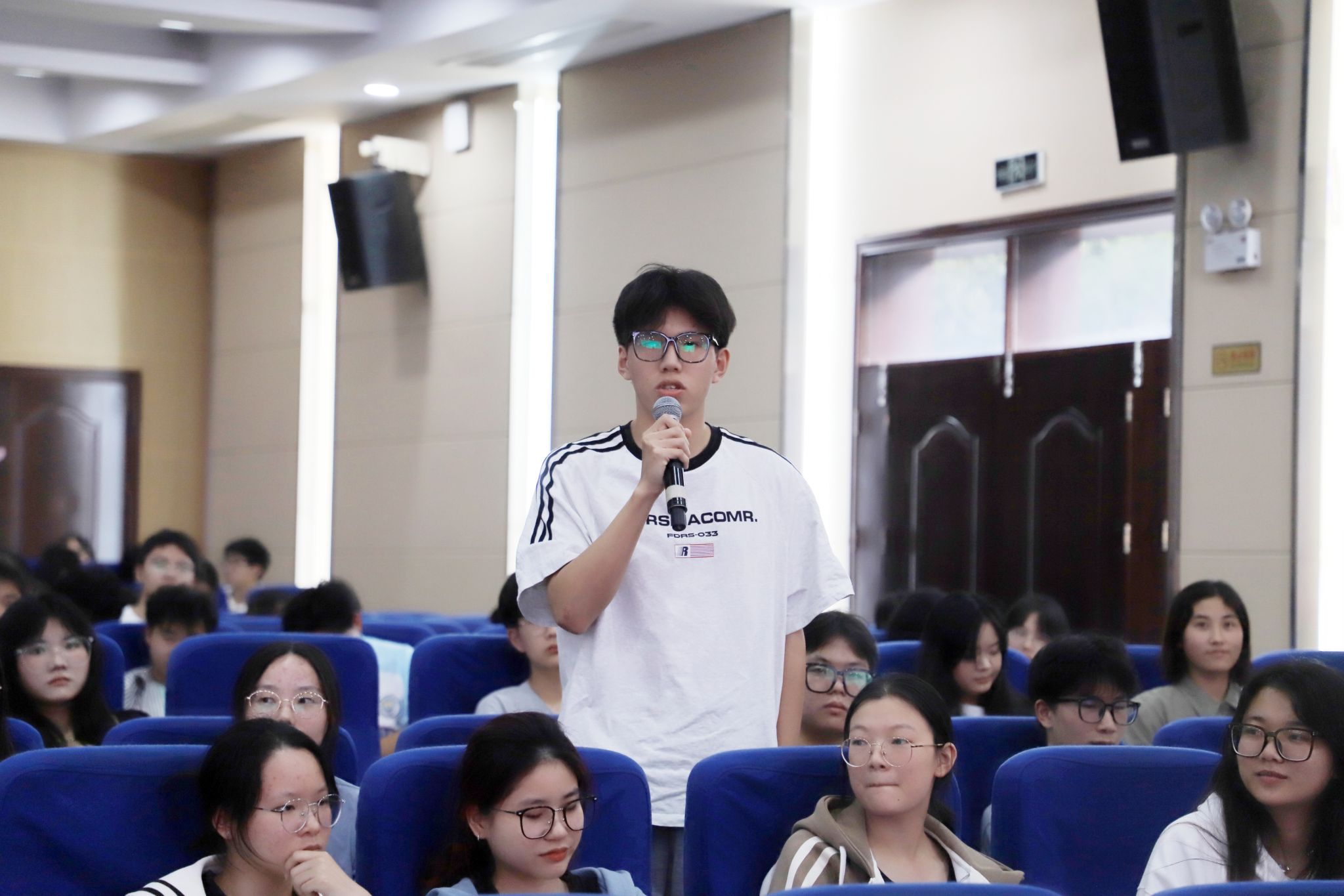在交流、答疑环节,黄创霞、胡维、邓昱全分别对学生关于“考研目标的确定”“择地区、择校、择专业”“跨专业报考的注意事项”等问题做出细致回答、给出具体建议。师生积极交流互动,现场气氛热烈,反响良好。