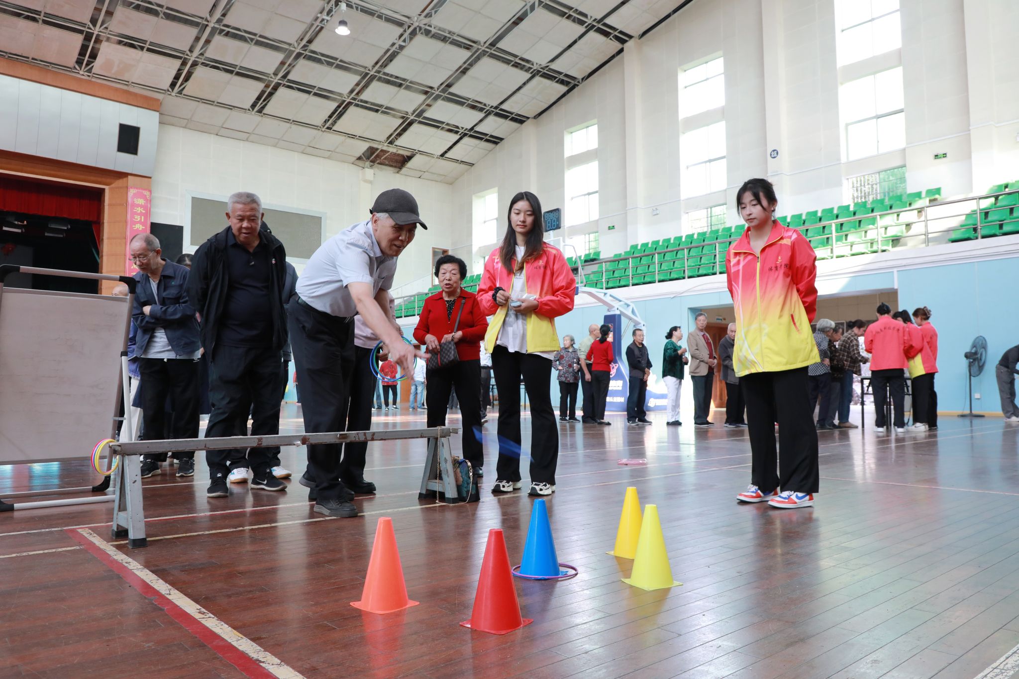 游艺活动分为简易保龄球、筷夹乒乓球、投球进筐、蒙面敲锣、投掷飞镖、智慧套圈、吹蜡烛等七个游戏模块。活动现场,老同志们热情高涨,其乐融融,积极参与到活动当中。