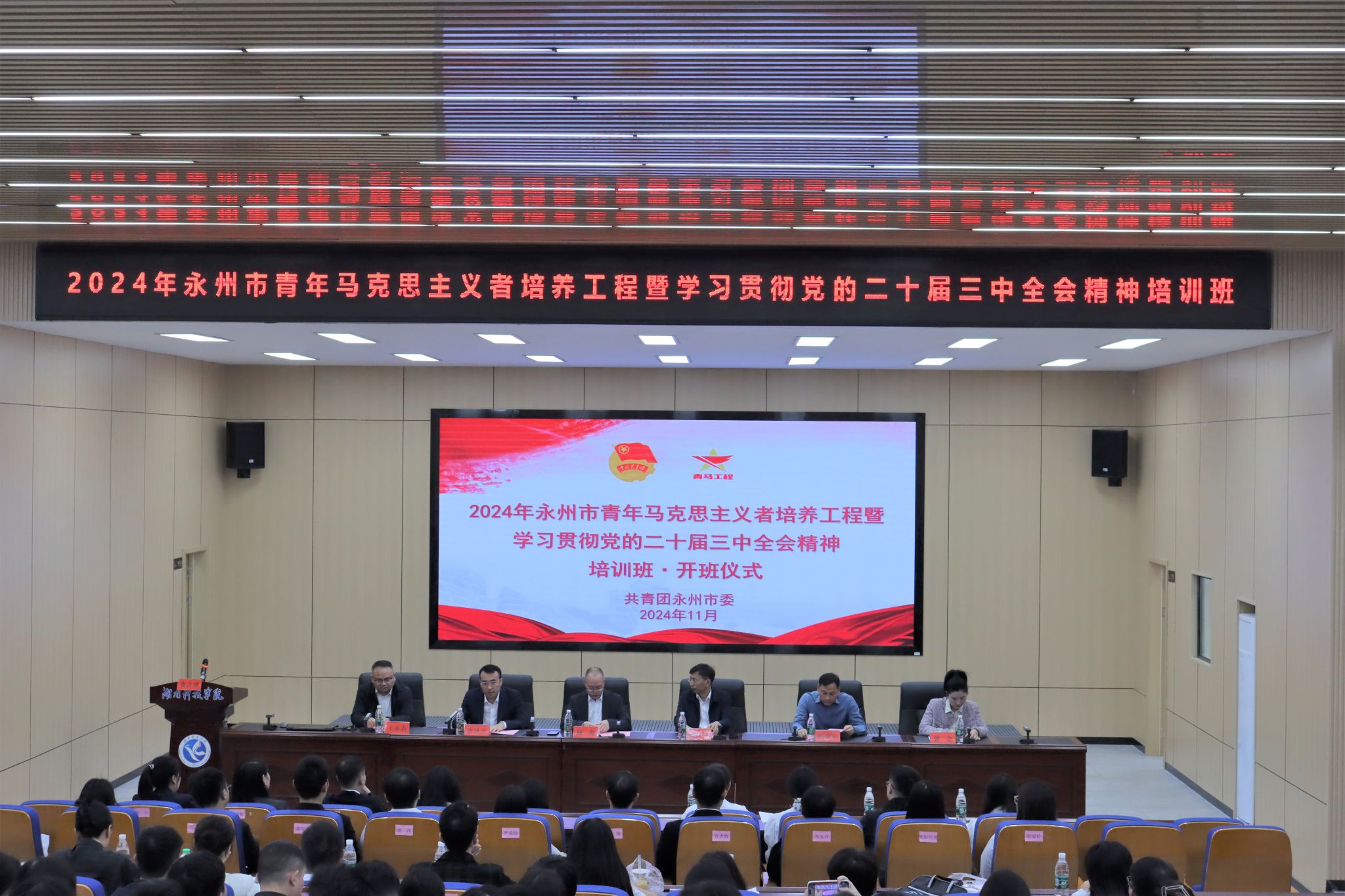 本网讯(通讯员 曹湖云 李师)11月5日,2024年永州市青年马克思主义者培养工程暨学习贯彻党的二十届三中全会精神培训班在我校开班。校党委委员、副校长何海,永州市委组织部副部长何红喜,团市委副书记唐泽彦,团市委组宣部部长曾念出席开班典礼,来自永州市各乡镇街道和学校战线的基层优秀团干部以及我校优秀团员、团干部代表共60余人参加活动,开班典礼由唐泽彦主持。