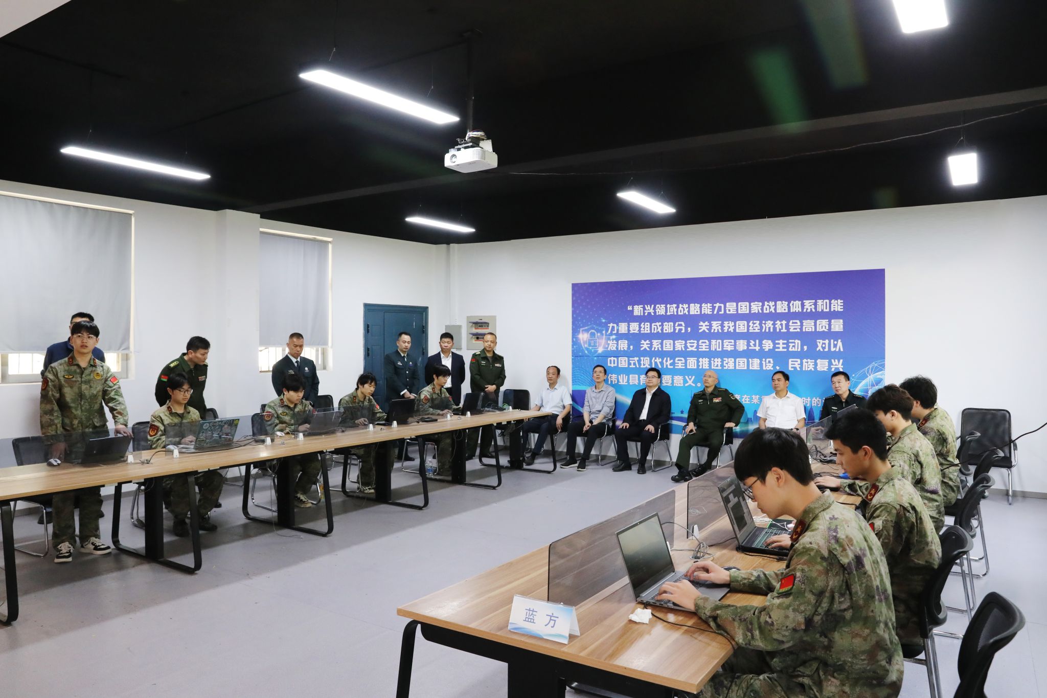 会后,黎强一行还深入我校工程实训中心、航空模拟舱、砖石质文物智慧化保护利用技术湖南省重点实验室等地进行实地考察,并观摩了我校基干民兵分队网上攻防演练。