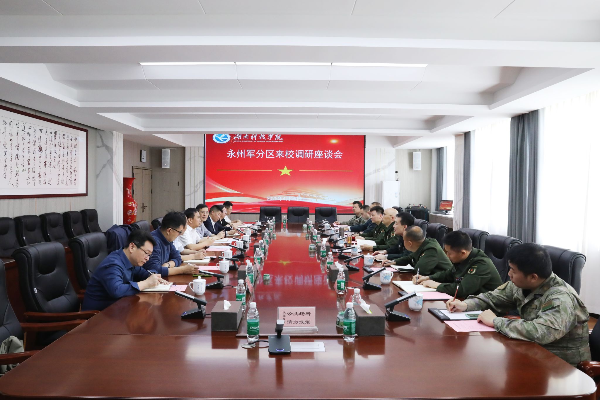 本网讯(通讯员 陈方)4月15日上午,永州军分区司令员黎强一行莅临我校调研指导武装工作。零陵区委书记、区人武部党委第一书记赵立平,校党委副书记、校长黄创霞,党委委员、纪委书记陈灿军,党委委员、组织部部长杨涛陪同调研。