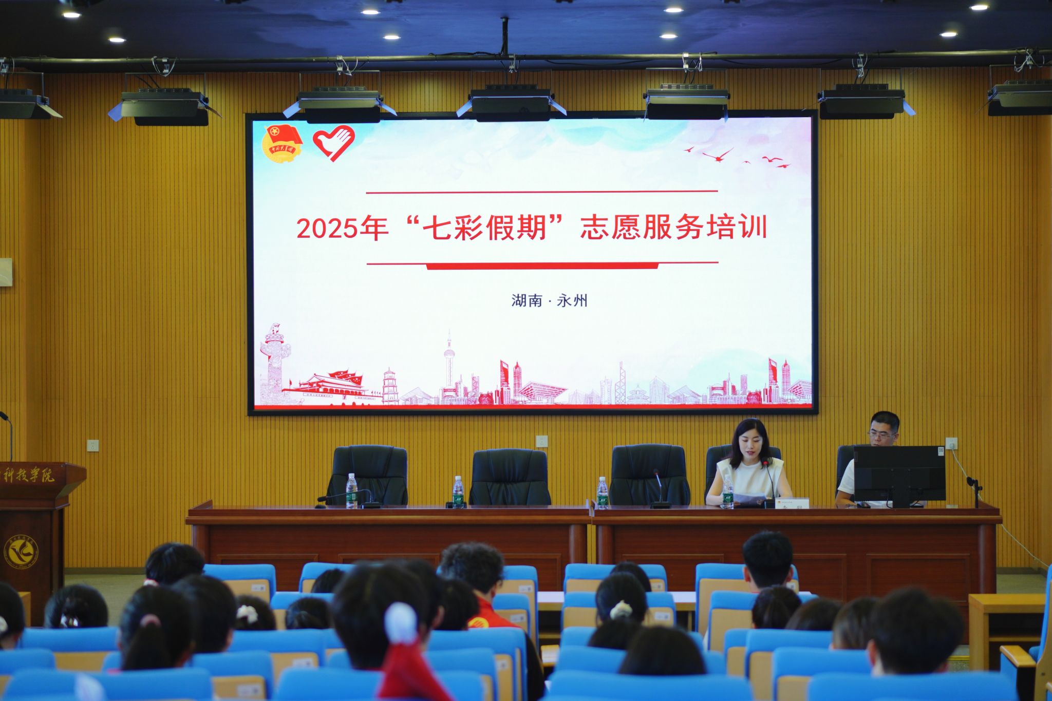 出征仪式后,李慰为我校即将奔赴服务一线的50余名青年志愿者进行了岗前培训。培训内容丰富实用,涵盖服务规范、课程设计要点、突发情况应对等多方面知识,助力志愿者们以更专业的姿态投入服务工作。
