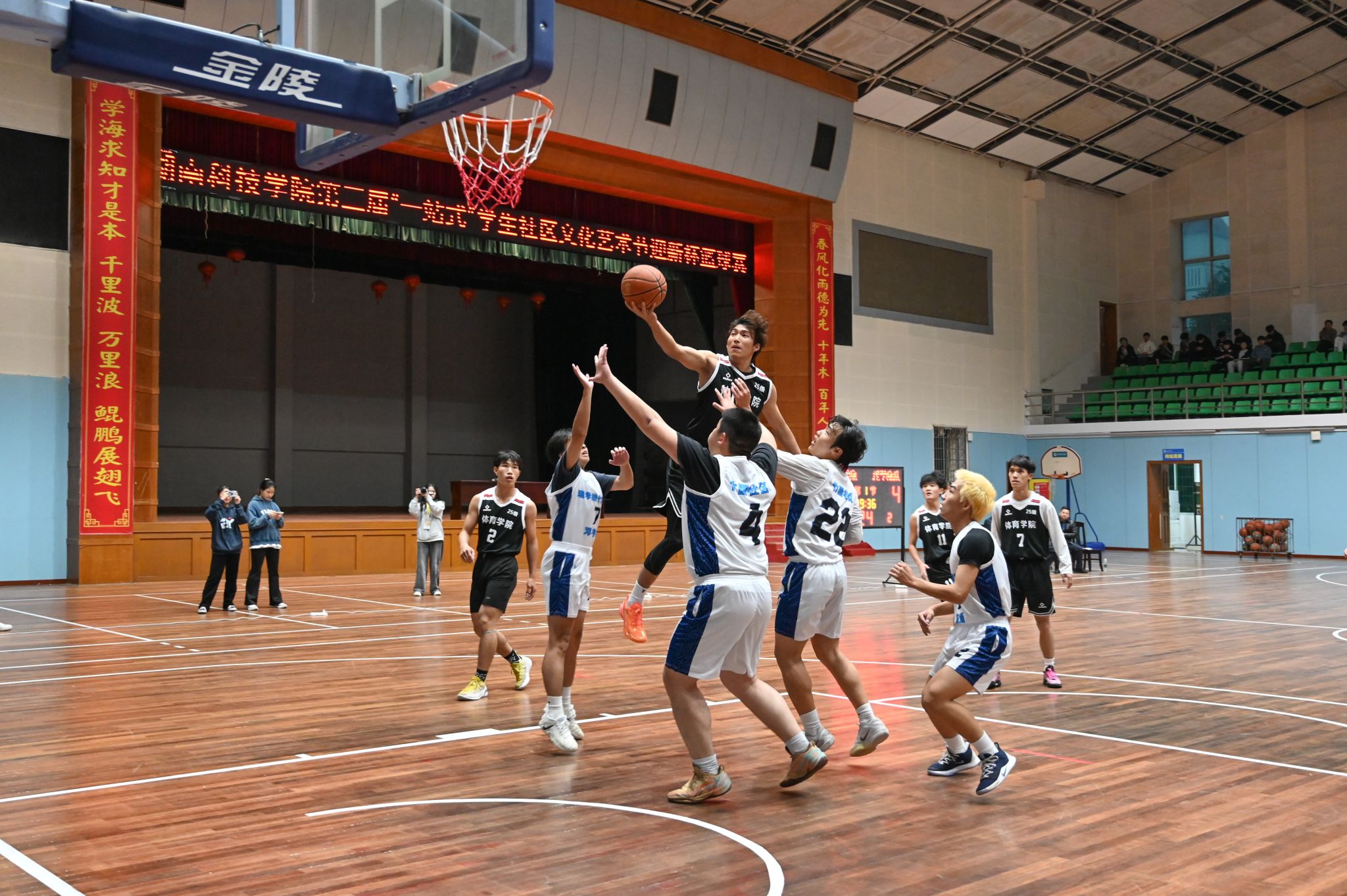 经过激烈角逐,荷园社区一舍凭借稳定的发挥和默契的配合,以71:26的悬殊比分战胜对手,斩获女子揭幕赛胜利;松园社区二舍与对手展开胶着对抗,最终凭借关键时刻的精准投篮,以76:65的比分赢得男子揭幕赛胜利。