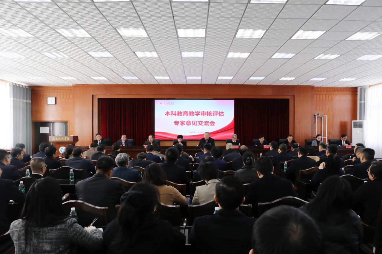 本网讯(记者 向薛峰 摄影 谢志豪)11月26日,学校举行本科教育教学审核评估专家意见交流会,湖南省教育厅二级巡视员周芳友,审核评估专家组组长、江苏师范大学原副校长钱进,湘南学院原校长王晓萍,江西师范大学原副校长项国雄,中南大学电子信息学院党委书记李长庚,湖北民族大学外国语学院院长骆贤凤,长沙理工大学继续教育学院党委书记刘思强,华南农业大学艺术学院原副院长曾智林,项目管理员、湖南科技大学教务处副处长蒋耀辉出席会议,校党委书记李钢,党委副书记、校长黄创霞等全体在校校领导参加会议。