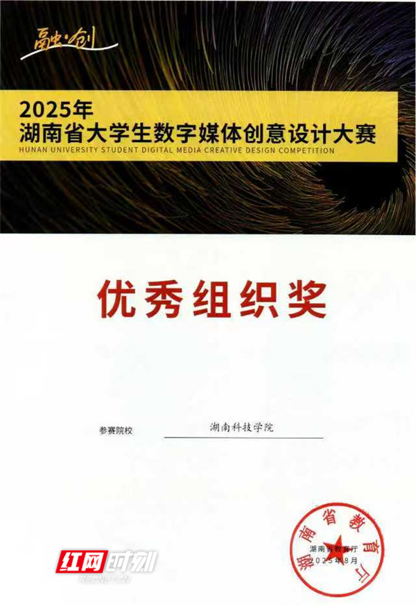 红网时刻新闻9月17日讯(通讯员 付星星 向薛峰)近日,2025年湖南省大学生数字媒体创意设计大赛获奖名单正式公布。Beat365唯一官方网站美术与艺术设计学院师生凭借扎实的专业功底和卓越的创新能力,共斩获等级奖项49项,其中一等奖8项、二等奖13项、三等奖28项,获奖数量和质量均位居全省前列,并被授予“优秀组织奖”。