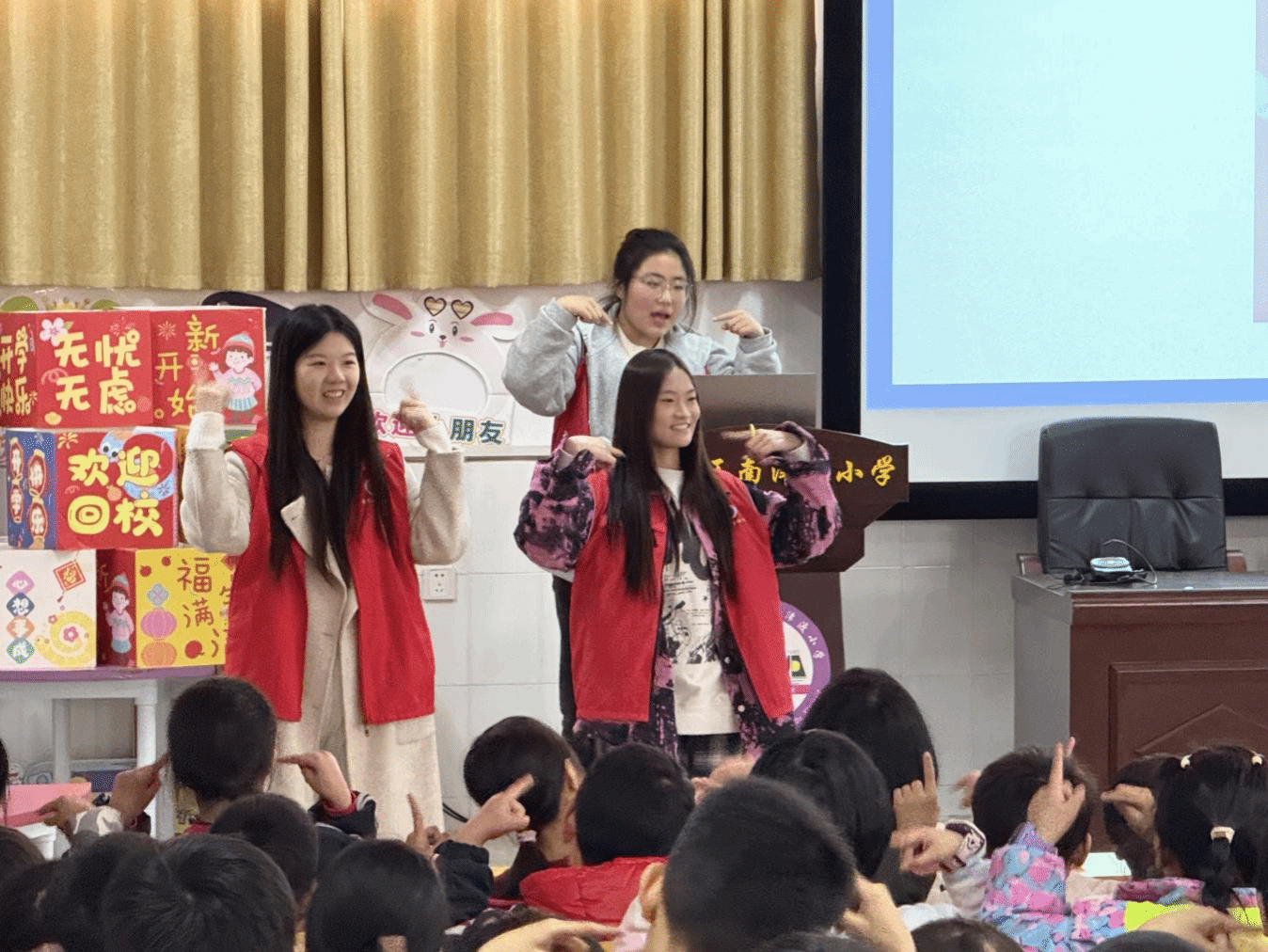 在专业展示环节,志愿者充分发挥艺术特长,带来精彩的《花日》钢琴弹奏,指尖流淌的悠扬旋律与创意编排的手势舞蹈交相辉映,构建出视听融合的美育课堂。孩子们跟随节奏律动拍手,眼眸中跃动着求知的光芒。“原来音乐可以帮助我们放松入睡”,“我要把学到的呼吸操教给爸爸妈妈”......活动结束后,学生们仍围在志愿者身边分享心得。