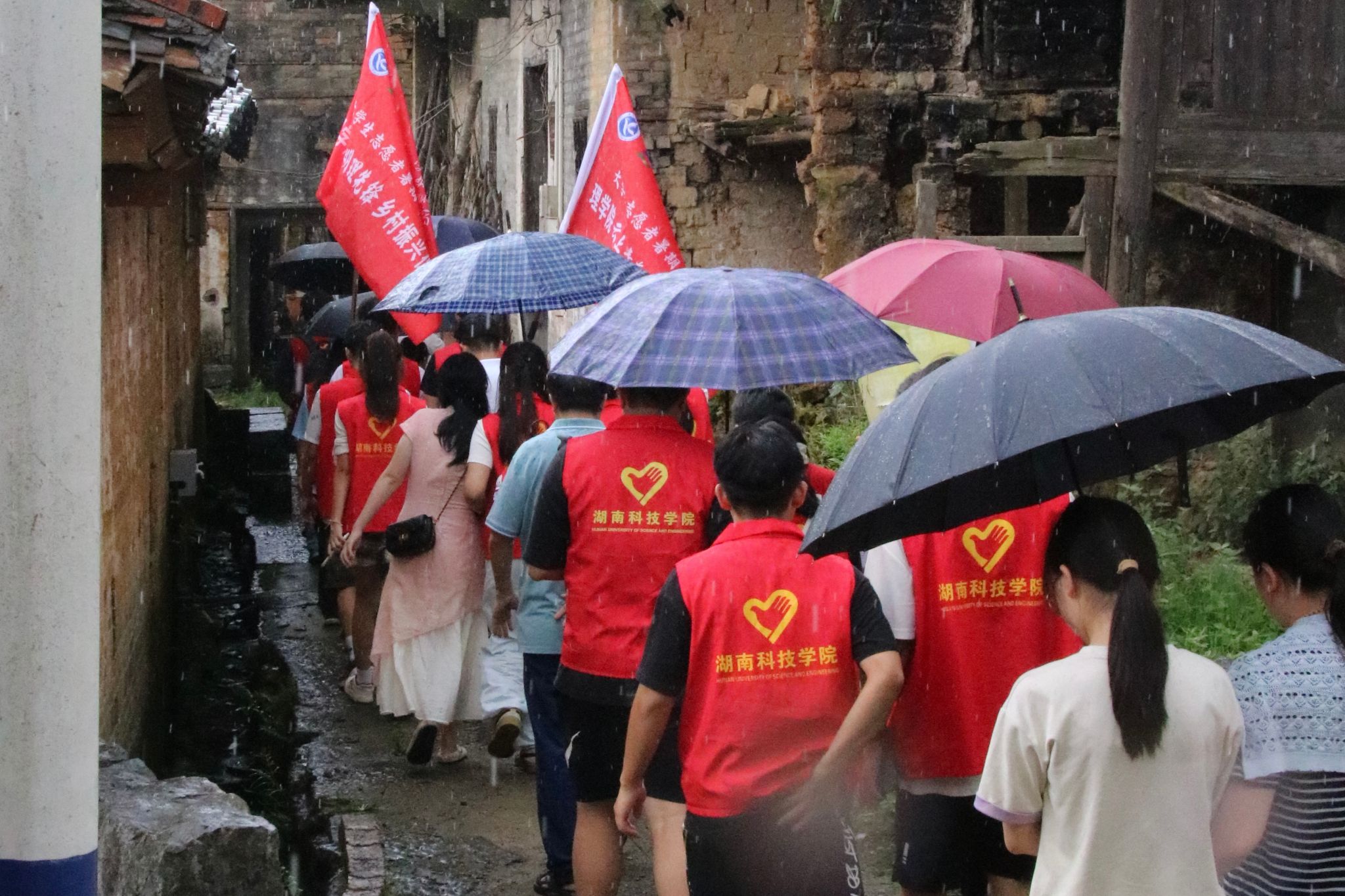 “学校办学始于1941年,前身为湖南省立第七师范学校,我们现在脚下的路就是八十多年前先辈们为了躲避日寇,在战火中坚持办学,从道县县城南迁时走过的路……这里承载着学校早期发展的珍贵历史记忆。”在去往土地塘村的山路上,理学院院长唐耀平向同行师生讲述了那段艰苦而光荣的校史。