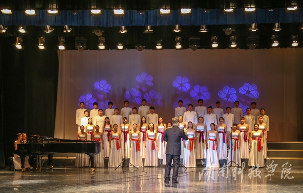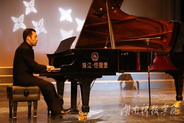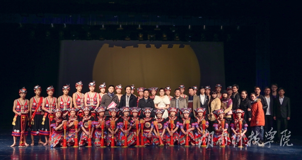 本网讯(音乐系供稿) 12月10日晚,音乐系演播大厅座无虚席,灯光璀璨,伴随着激昂的旋律,音乐系“回顾2014 展望2015”优秀节目展演晚会浓情上演。校长曾宝成、副校长宋宏福、音乐系党总支书记邹林波出席观看本次展演活动。