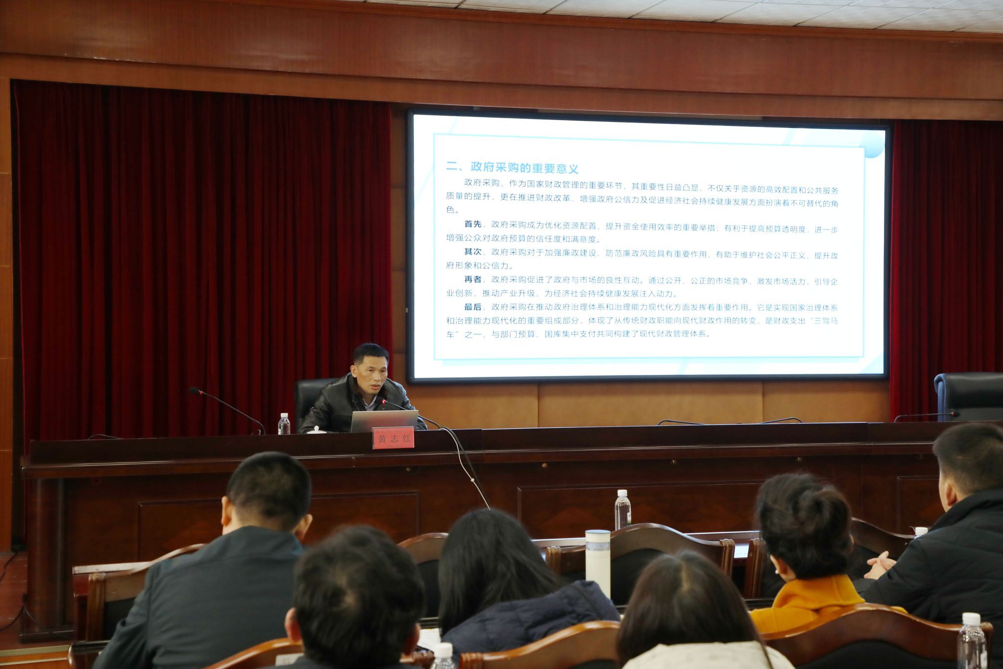 会上,省财政厅政府采购处副处长刘新安以《更好发挥政府采购在高校治理中的重要作用》为题,从“政府采购事关高校治理的体系能力、深化政府采购制度改革的核心要义、政府采购执行能力提升的基本路径”等方面深入讲述了规范政府采购流程的重要性。