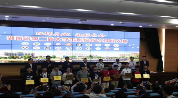 三、人才培养 学生近三年在教育厅等部门组织的官方权威赛事和行业内有影响力的企业赛事中获得可喜成绩,获得全国大学生测绘技能竞赛特等奖1项,一等奖4项,二等奖6项,专业组团体二等奖1项。全国大学生GIS应用技能大赛中二等奖3项,湖南省测绘技能大赛一等奖2项、二等奖6项、三等奖12项,在2018年获团中央“镜头中的三下乡”优秀团队荣获全国三下乡重点团队。测绘工程专业考研上线人数、录取人数逐年上升,部分学生录取到中国地质大学、长安大学、广东工业大学等高校攻读硕士研究生,考研率达20%左右。