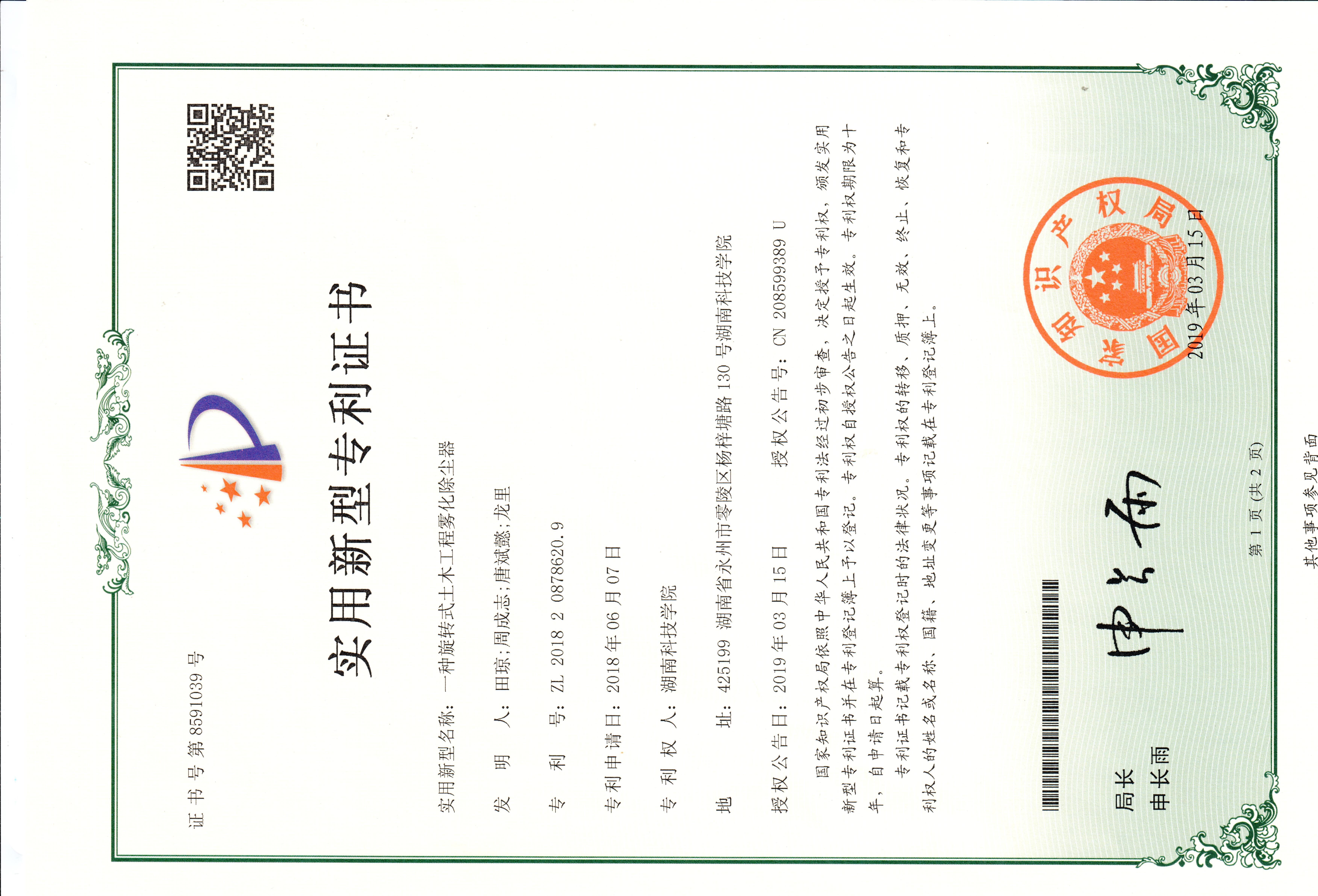 田琼专利ZL.201820878620.9