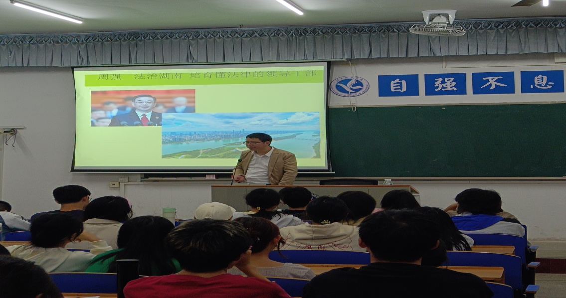 (本网讯 徐宏)11月5日晚,湖南大学法学院副院长蒋海松教授应邀出席文法论坛,为我院法学专业师生做题为《法治思维趣谈》的讲座,讲座由包红光副院长主持。