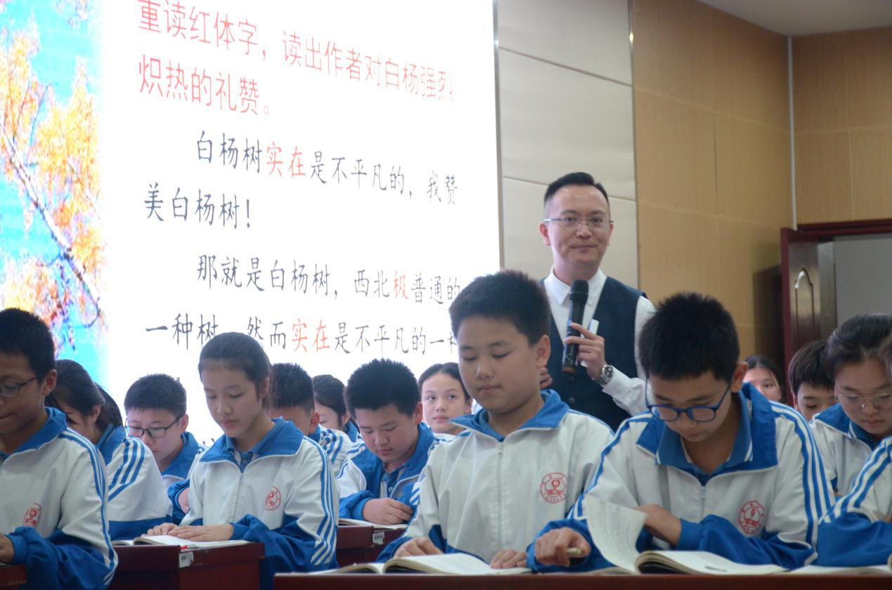 本次活动共有三个阶段。第一阶段,陈铿教授《白杨礼赞》教学示范课。本堂示范课贯彻陈教师的“四动”与课堂的“四实”,是一节有思想灵魂的语文课,师生之间尊重、坦诚、碰撞、争论、对话,知识的光辉淋漓尽致地散发。话不在多,点到为止;声不在大,自有其旨。课堂形式丰富,大大提高了学生的课堂积极性。