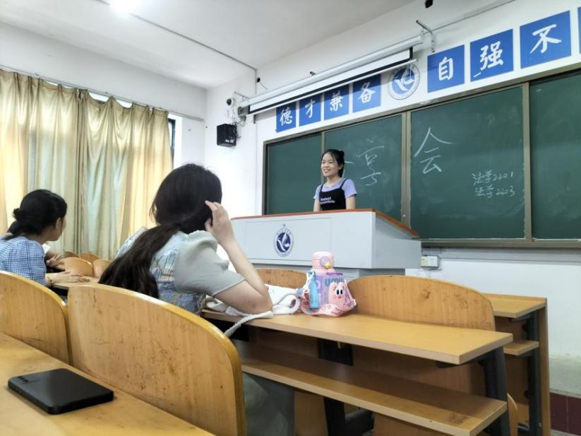 此次活动邀请了12名优秀毕业生代表深入低年级各班分享学习经验。毕业生代表吴澳在分享会上说:兴趣是最好的老师,学好专业课是同学们考公、考编、考研的基础,并分享了自身教师编上岸的准备过程;毕业生代表谭玲湘对同学们在法考考研等方面的困惑进行了详细解答,同时鼓励同学们坚定内心选择,打好课程基础,多进行司法实践;毕业生代表张耀丹介绍选调生的概念与报名条件鼓励同学多参加校园活动和社会实践,也分享自己考取选调生的成功经验。
