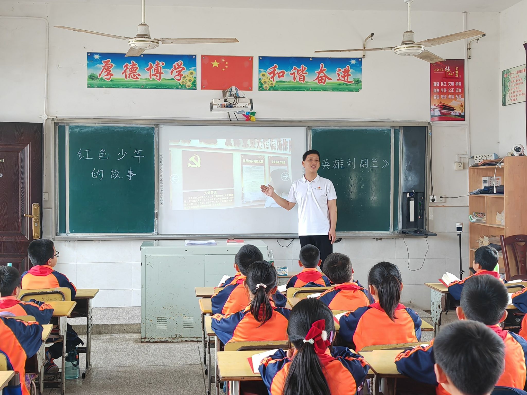 师生党员到凼底小学开展宣讲活动。