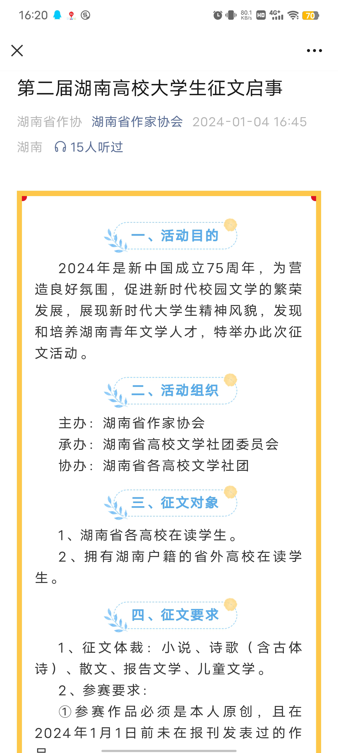 描摹天地、书写人文,文以载道、文以传情。我社将继续以发展校园文化、培育文学新人为己任,总结以前成功经验,继续开展文学性、专业性兼具的活动!(一审:黄海滨 二审:肖智成 三审:张能泉)
