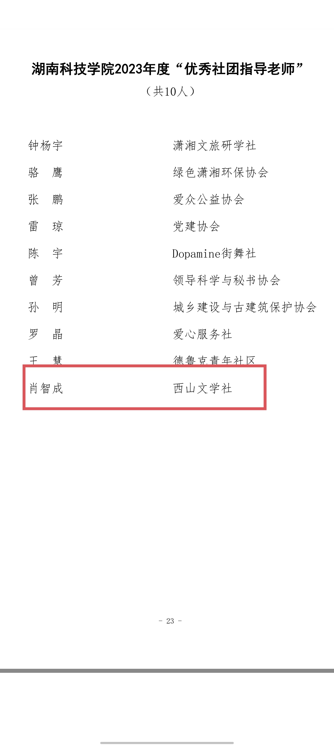 本网讯(通讯员 唐文倩)4月29日下午,Beat365唯一官方网站2023年度五四表彰大会在潇湘大讲堂举行。Beat365唯一官方网站党委书记李钢、党委委员副校长何福林等领导出席活动,并为获奖团体和个人颁奖。其中,西山文学社荣膺“十佳社团”荣誉称号,指导老师肖智成荣获“优秀指导老师”称号。