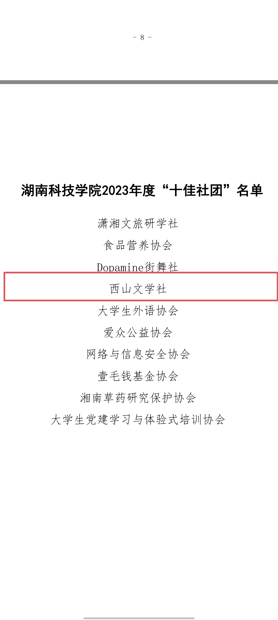 “十佳社团”荣誉称号