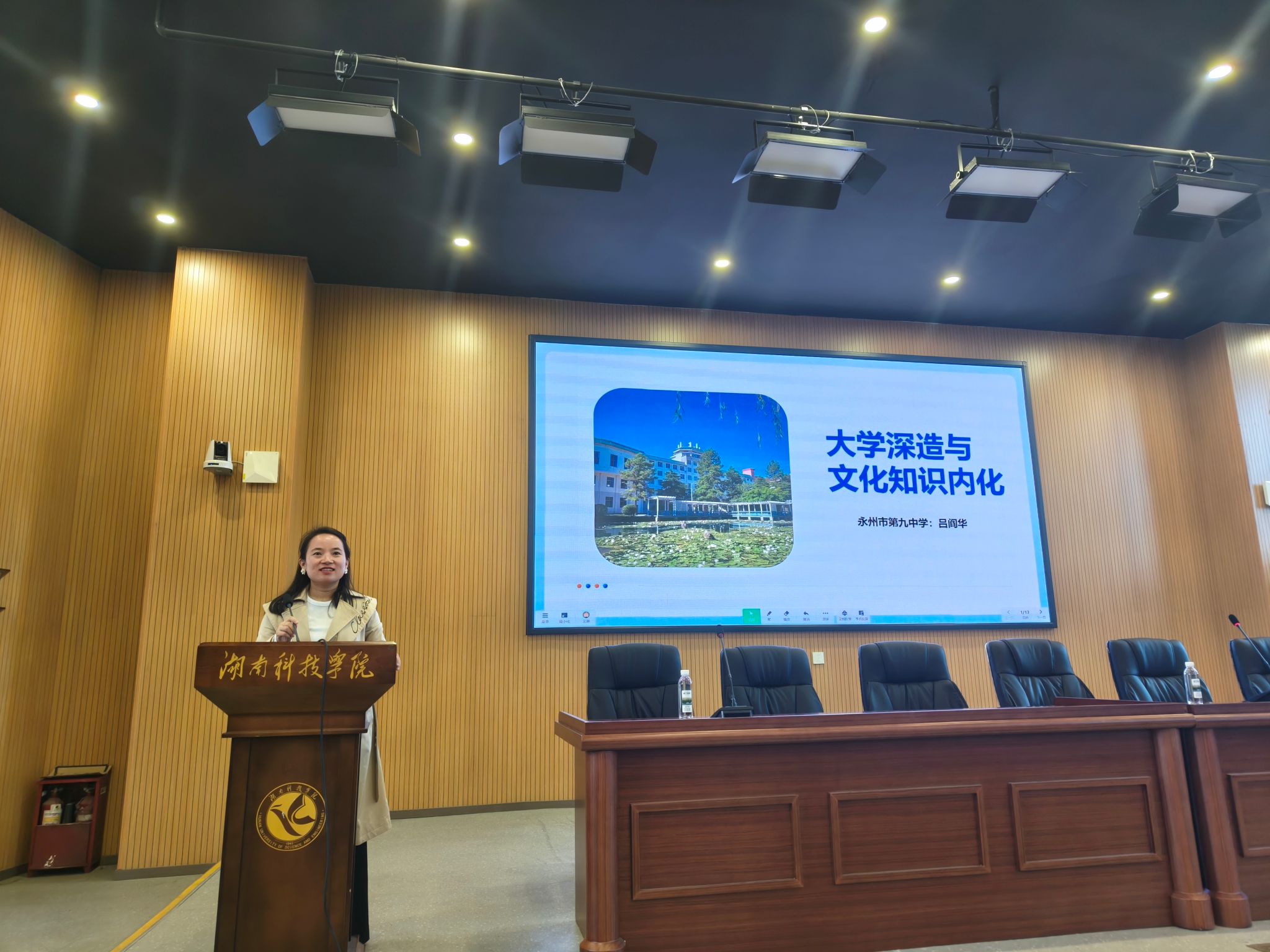紧接着,吕阎华就大学深造和文化知识内化进行了深入探讨。她强调了大学学习对于中学教师成长的重要性,并分享了自己在深造过程中的经验和心得。吕阎华还鼓励大家要将所学知识内化于心,外化于行,不断提升自己的专业素养和教学能力。