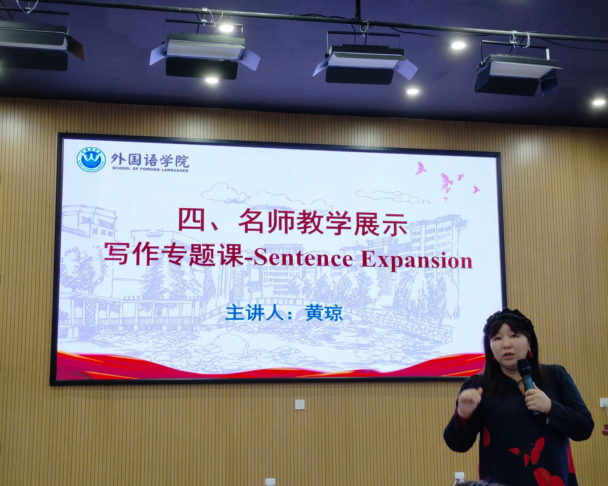 活动伊始,黄琼以“Sentence Expansion”为主题,为师生们带来了一场精彩的写作专题课展示。她通过生动的案例和深入浅出的讲解,展示了如何通过句子扩展技巧提升学生的英语写作能力,让在场的师生受益匪浅。