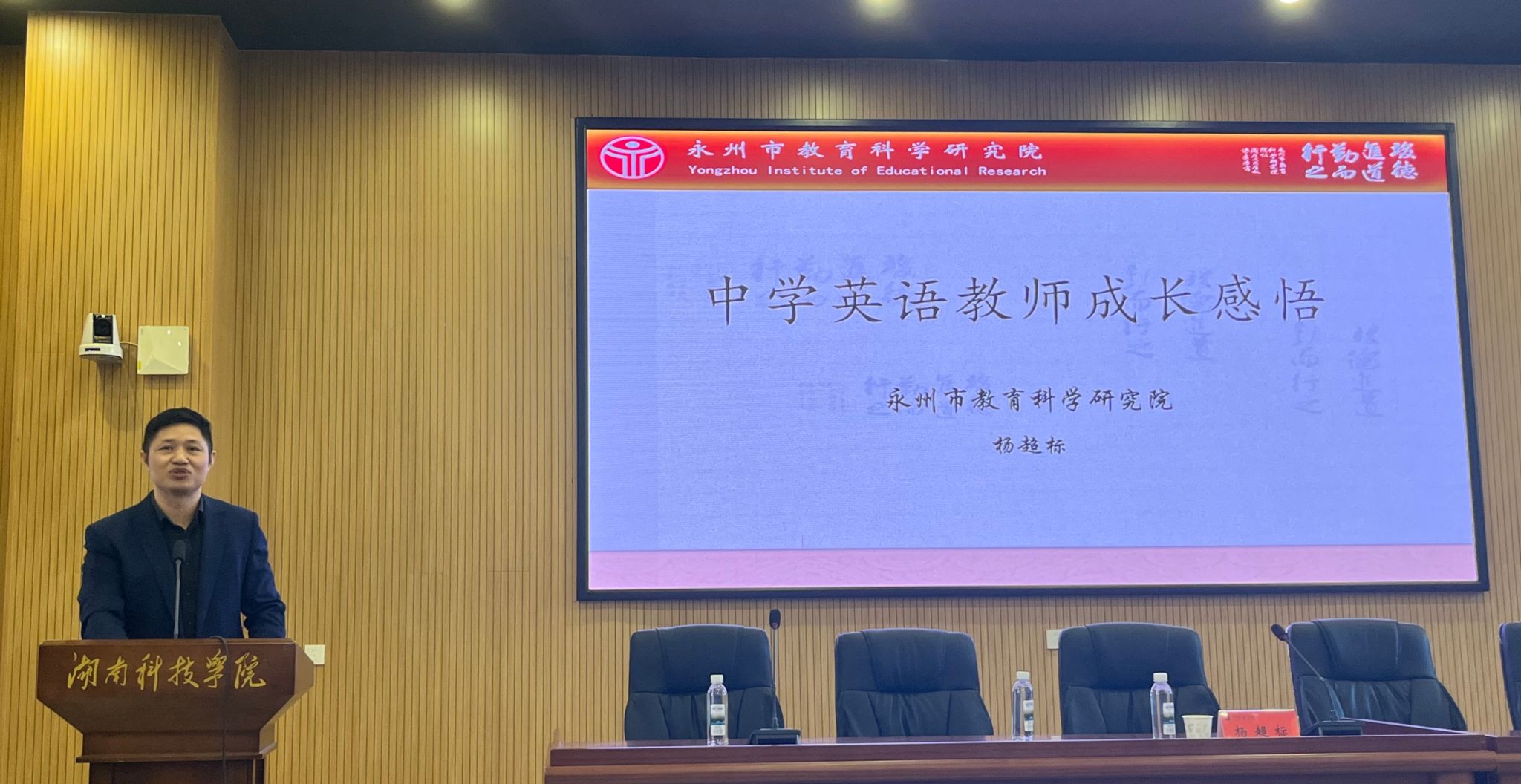 随后,杨超标围绕中学英语教师的成长感悟进行了分享。他结合自己多年的教育研究和实践经验,阐述了中学英语教师在专业成长道路上所面临的挑战和机遇,并鼓励在座的师范生们要坚定信念,勇于担当,为未来的教育事业贡献自己的力量。