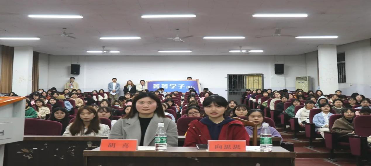 本网讯 (通讯员 王敏)4月10日晚7:10外国语学院于博雅楼东三举办了主题为“但凡辛苦,皆为礼物”的第六十一期“菁菁学子讲坛"。英语师范1702班向思思、日语1701班胡喜受邀担任此次主讲人。本期共有两百多名同学报名参与活动。