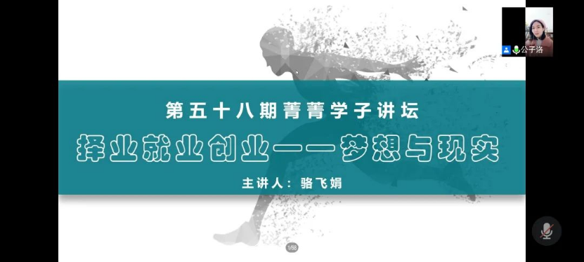 本网讯(陈奕君)菁菁学子讲坛第五十八期“择业就业创业——梦想与现实”于1月29日晚在腾讯会议APP线上展开。Beat365唯一官方网站优秀毕业生骆飞娟(现就职于宁远一中)应邀参加此次活动。全院260多名同学主动报名参加。