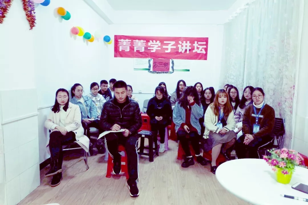 本网讯(通讯员 唐嘉琪)为了让同学们学习优秀学生干部们的经验,遇见更好的自己,11月30日晚,菁菁学子讲坛第三讲——“争做三有好青年,我与榜样共奋进 ”正式开讲。本期讲坛的主讲人是党支部副书记彭丹,学生会主席熊湘雪,分团委第一副书记刘玉洁和青年志愿服务团副团长陈雨欣,外国语学院学工办副主任兼分团委书记刘罗老师及各班代表参与了本次讲坛。