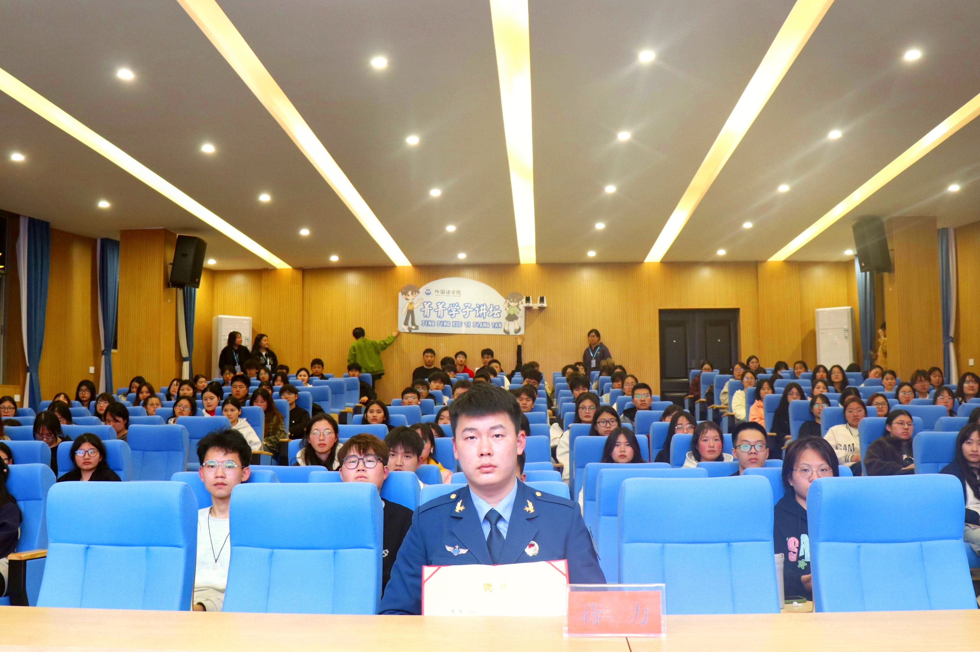(通讯员 江映稼 摄影 袁睿)3月22日19:10,外国语学院于博雅楼东三报告厅举办以“风华正茂书壮志,参军报国正当时”为主题的第九十四期菁菁学子讲坛。本次活动邀请到商务英语2002班蒋力作为主讲人。全院共有200多名同学参与讲座。