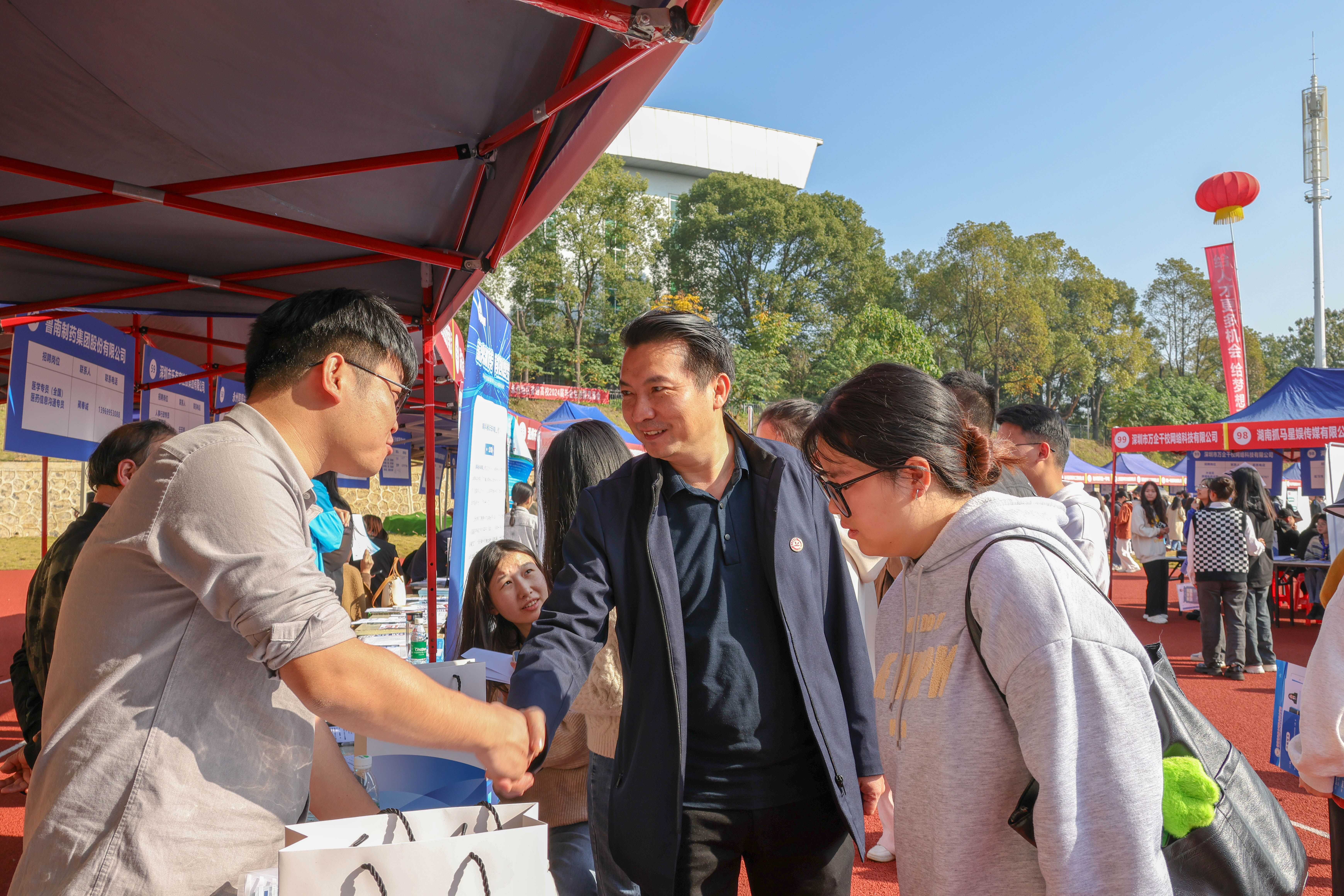 (通讯员谭俊杰 王素芳)为全面贯彻落实党中央、国务院“稳就业”“保就业”决策部署,更好为毕业生搭建求职平台,促进我校2024届毕业生高质量就业,2023年11月28日上午,永州地区普通高校2024届毕业生供需见面会在Beat365唯一官方网站田径场举行。外国语学院党总支书记唐君、辅导员王素芳带领2024届毕业生参加招聘会。