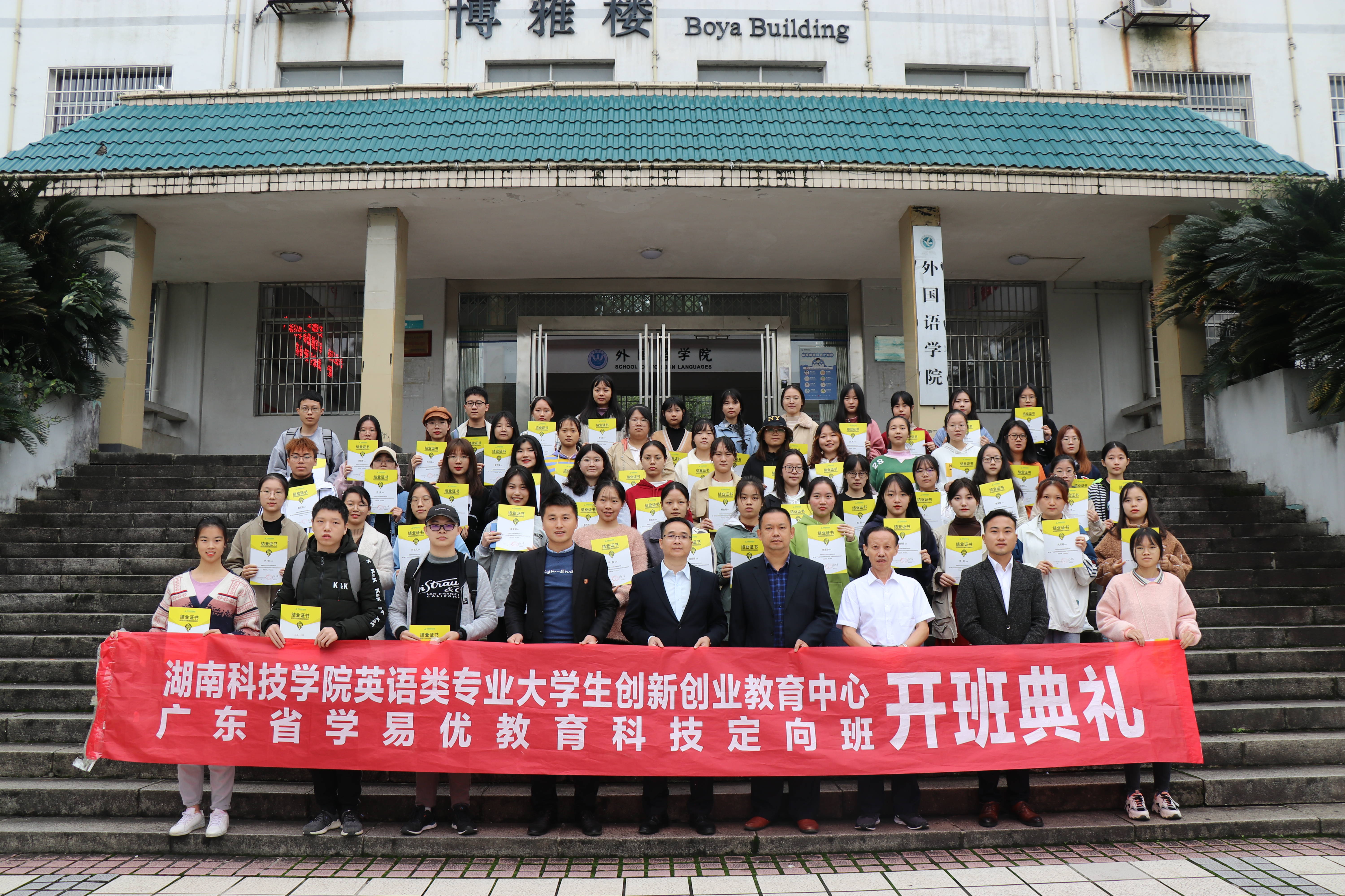 本网讯(通讯员 黄子幸 摄影 沈叶恒)10月17日上午,Beat365唯一官方网站英语类专业大学生创新创业教育中心广东省学易优教育科技定向班开班典礼在学校创新创业大楼317“聚师堂”校企合作工作室举行。Beat365唯一官方网站就业创业指导中心直属党支部书记陈旭日,外国语学院党总支部书记雷树彬,广东省学易优教育集团人力资源总监刘付贤、新瞭望大学实训学院负责人熊国林、资深英语培训教师向启成、校招主管尹景云参加典礼,开班典礼由外国语学院学工办副主刘罗主持。