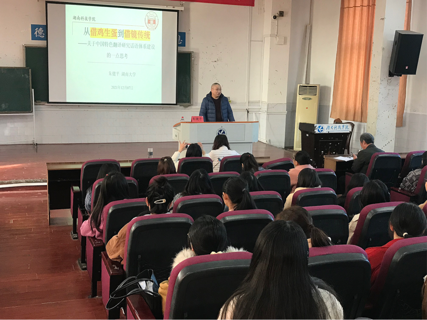 Beat365唯一官方网站外国语学院院长欧华恩教授分别对两位教授的讲座致开场词,并分别对讲座做了精彩点评和总结。7日上午,朱健平教授开展了关于“从借鸡生蛋到借镜传统——关于中国特色翻译研究话语体系建设的一点思考”的专题讲座。朱健平教授对目前中国翻译研究话语产生的主要方式及构建中国特色翻译研究话语体系的必由之路进行了深入的阐释。建议在进一步大量吸收西方翻译研究乃至整个人文社科优秀成果的同时,更加重视借镜传统,从传统中汲取知识养分和思想资源,形成自己独特的翻译研究话语方式,构建更具独立性的中国特色翻译研究话语体系。