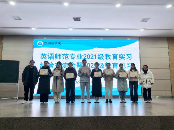 (通讯员 蒋海霞)3月5日下午16:30,外国语学院在潇湘大讲堂成功举办2021级教育实习经验交流会暨2022级英语师范专业教育见习活动。本次活动旨在总结2021级英语专业学生的教育实习经验,展示实习生的优质示范课,同时引导2022级学生进行教育见习,积极探索教育教学的新方法、新举措、新思路。外国语学院副院长胡维、永州九中教育集团副校长吕阎华、英语系系主任郭建伟、英语教学理论与实践课程教师代表及实习带队老师们出席,2021级、2022级英语专业全体学生参与。