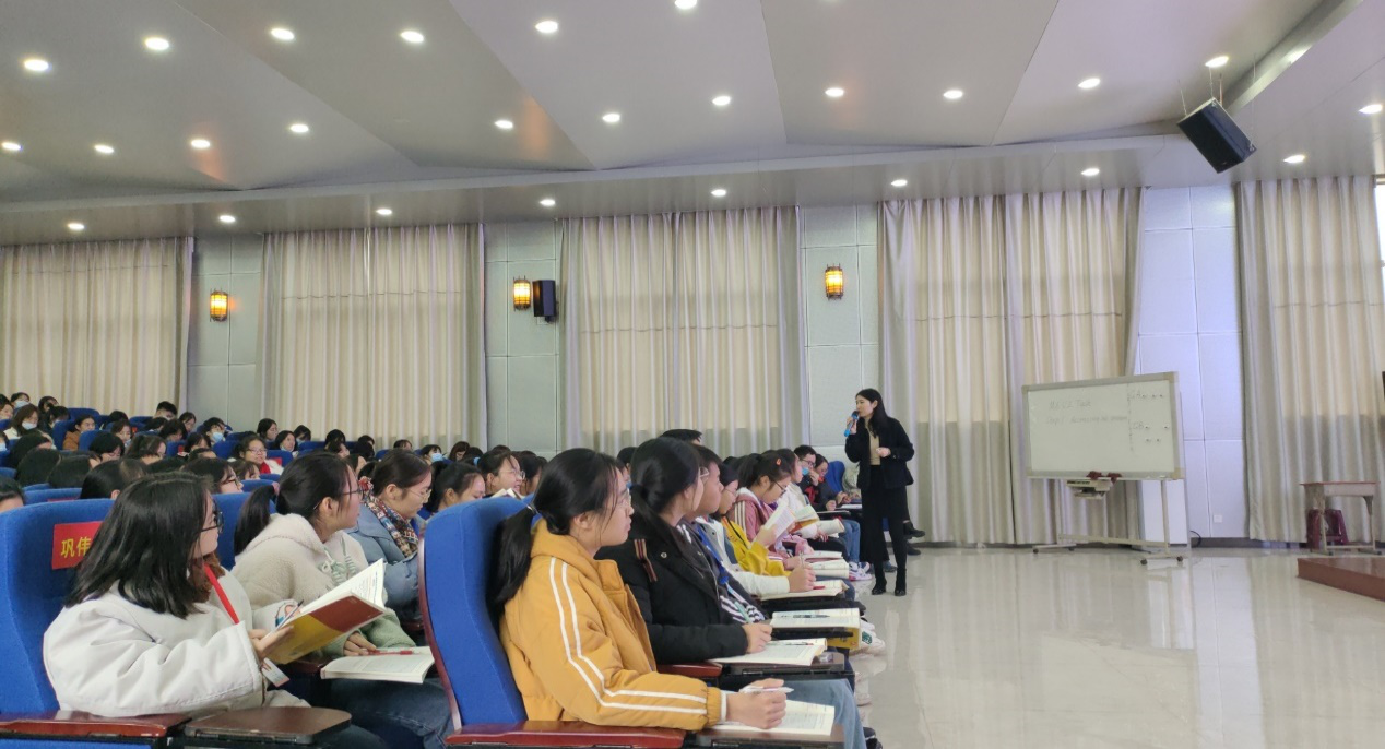 随后,胡维副院长用流利的英语表达了对本次活动的组织者和参与者的衷心感谢,对示范课的充分肯定,并做了精彩点评。她指出,三位授课教师课程准备充分,教学激情四射,课件制作精美,导入新颖有趣,教学方法多样,过程流畅自然,语言幽默生动,寓思想教育于课堂教学,落实了习总书记提出的教育要围绕“培养什么人、怎样培养人、为谁培养人”这个根本问题,教学要围绕“教什么、为什么教、怎么教”展开。她最后要求学生要夯实专业基础,不断提升专业核心素养。