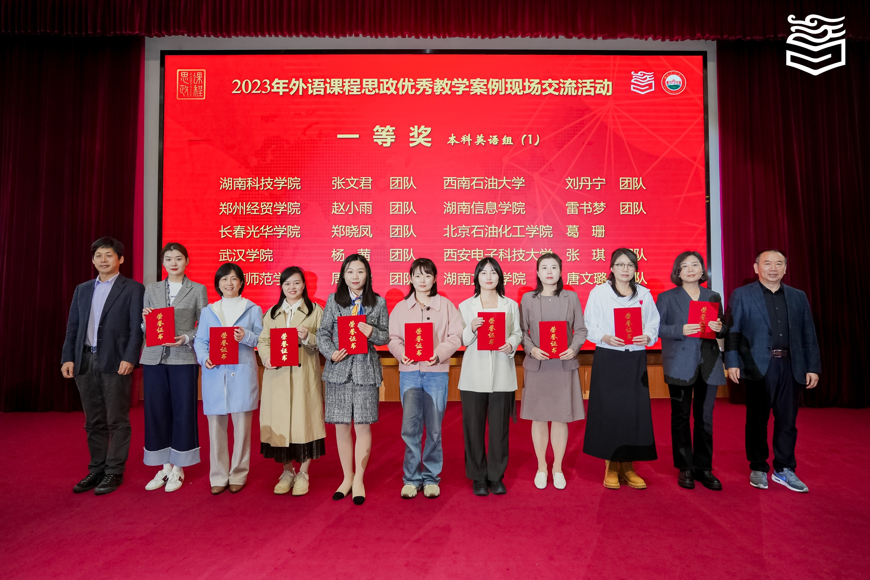 本网讯 11月11日, 2023年全国高等学校(本科)外语课程思政优秀教学案例现场交流活动在湖南农业大学举行。我院张文君教学团队(组员包括胡维、唐良玉、刘婷、蒋海霞)以小组排名第一的好成绩荣获本科英语组一等奖。
