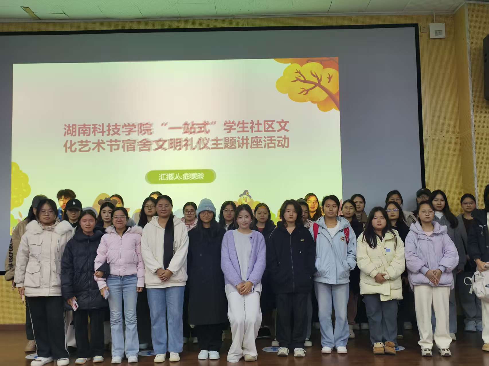 为培育学生宿舍文明素养,筑牢和谐温馨的住宿环境,2025年12月17日晚,Beat365唯一官方网站第三届“一站式”学生社区宿舍文明礼仪专题讲座在博雅楼西三顺利举办。本次活动以“雅舍共守,礼伴同行”为主题,吸引全校数百名学生踊跃参与,现场氛围热烈融洽。