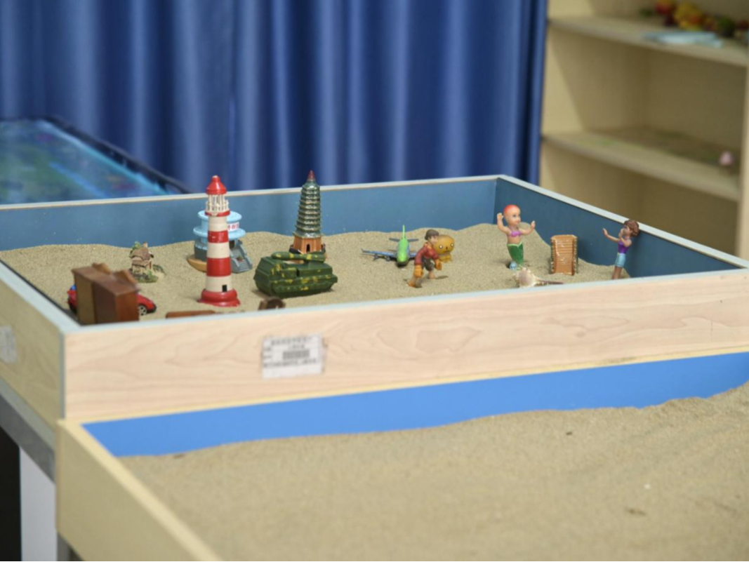 沙盘室内有普通沙盘、电子沙盘和各类沙具,种类包括神话形象、卡通人物、建筑物等。个体可以通过安排模型和场景来提高自我认知和实现自我疗愈。