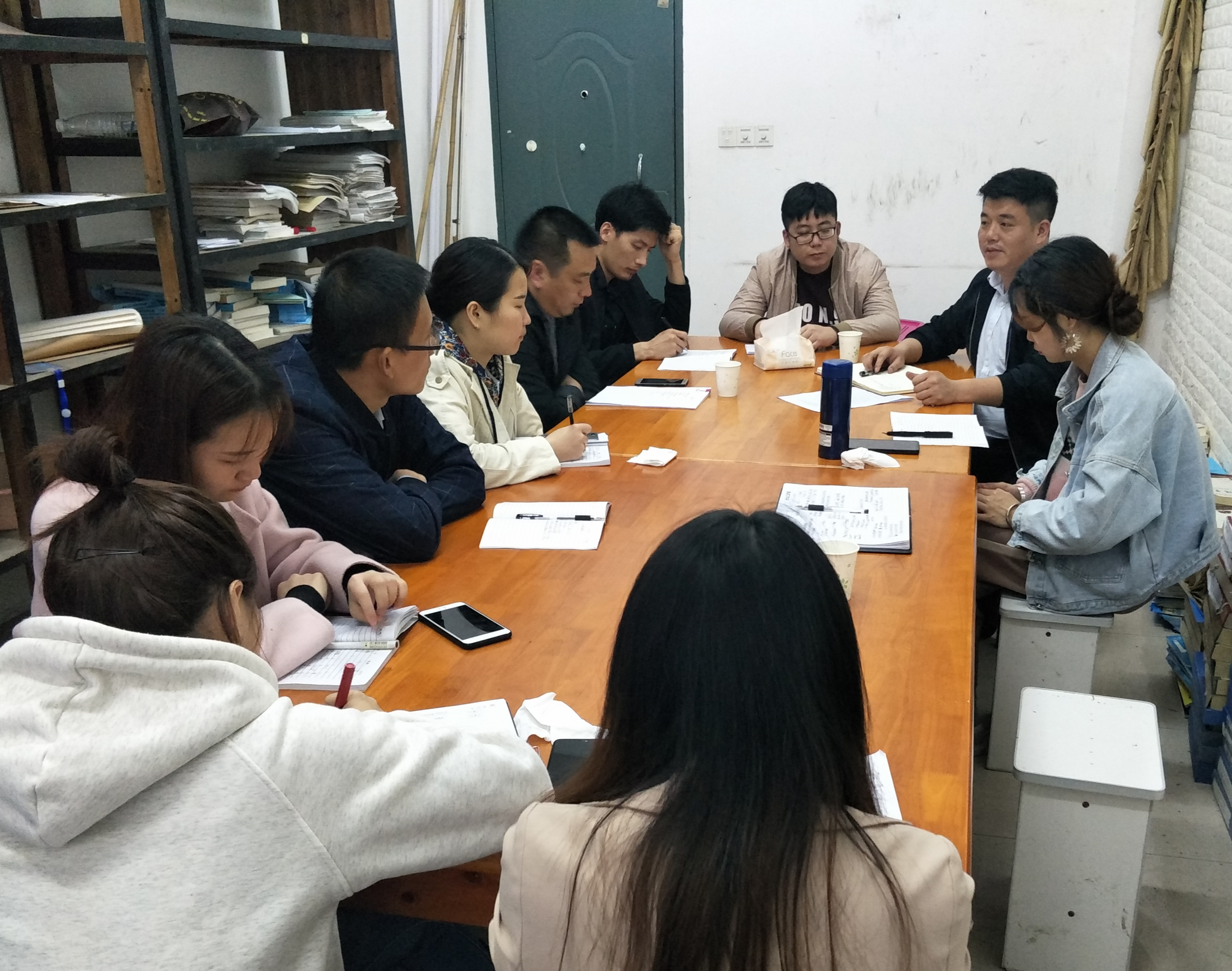 最后,胡部长以某个重点关注对象为例,分析讨论了该重点关注对象的基本情况、处理措施等等。各辅导员以及班主任分别向胡敏辉和涂巍进行提问,在交流中得到了很好的解答,大家纷纷表示这次会议很有效果,获益很多。