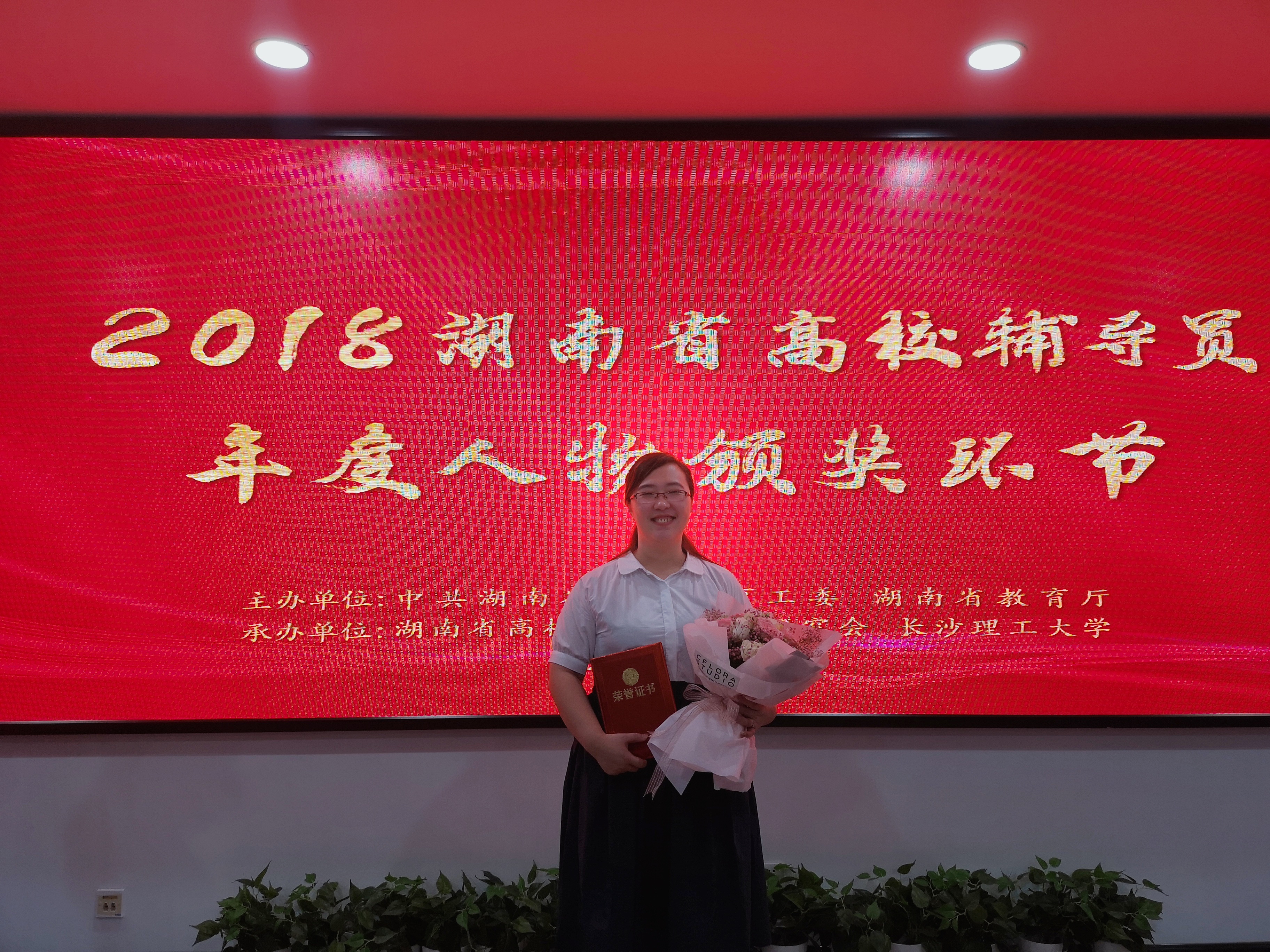 本网讯(通讯员康平)近日,由省委教育工委、省教育厅举办的“2018湖南省高校辅导员年度人物”推选展示活动结果揭晓,我校王君老师荣获“2018湖南省高校辅导员年度人物”提名奖。