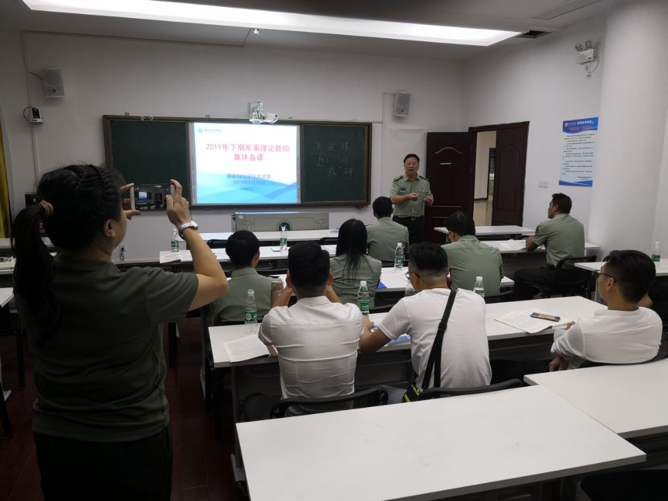 首先,外国语学院罗晶等四名新申请军事理论授课教师进行试讲。4名教师通过采用PPT、观看视频、案例导入等形式对中国国防、国防建设、中国周边安全环境等内容进行讲授,课堂气氛轻松活跃。之后,唐华山对4名教师的试讲情况进行精彩点评,对他们的授课内容及风格予以肯定。从备课、教法、授课语言及着装、教态等方面对本学期军事理论教学工作提出了三点要求。一是在思想上高度重视,拓宽知识面,集体备课、统一着装,积极了解当前国际国内形势,了解学生思想动态;二是采用启发式教学,激发学生的学习欲望,将军事理论知识讲深、讲透、讲精,将新知识、新思想贯穿其中;三是结合建国70周年的历史时机,引导学生将小我融入大我,将个人的前途、命运与国家的命运紧密结合。之后,根据《新军事课大纲》要求,军事理论教研室主任胡勇胜对今年军事理论课程的授课队伍、课程设置、教学模块安排、教学时间安排等作了简要介绍,鼓励教师走下讲台,采用丰富多样、图文并茂的课件、视频与学生互动。