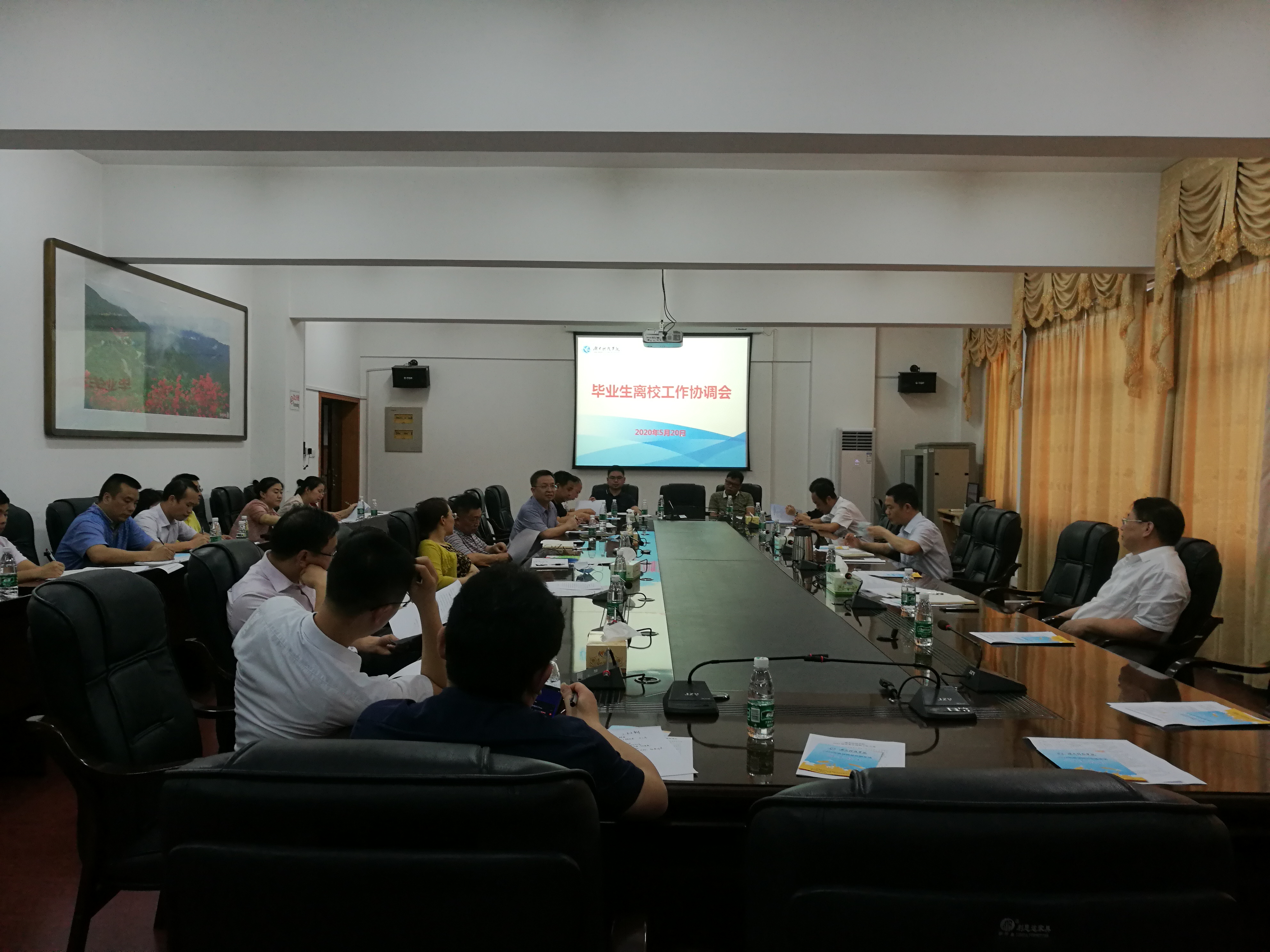 本网讯5月20日下午,学校在行政楼六楼会议室召开2020届毕业生离校工作协调会。校党委委员、副校长吴小林出席,党政办、组织部、宣传统战部、学工部、教务处、计财处、就业创业指导中心、保卫处、团委、图书馆、后勤服务总公司、档案馆等部门负责人,各教学学院党总支副书记参加。