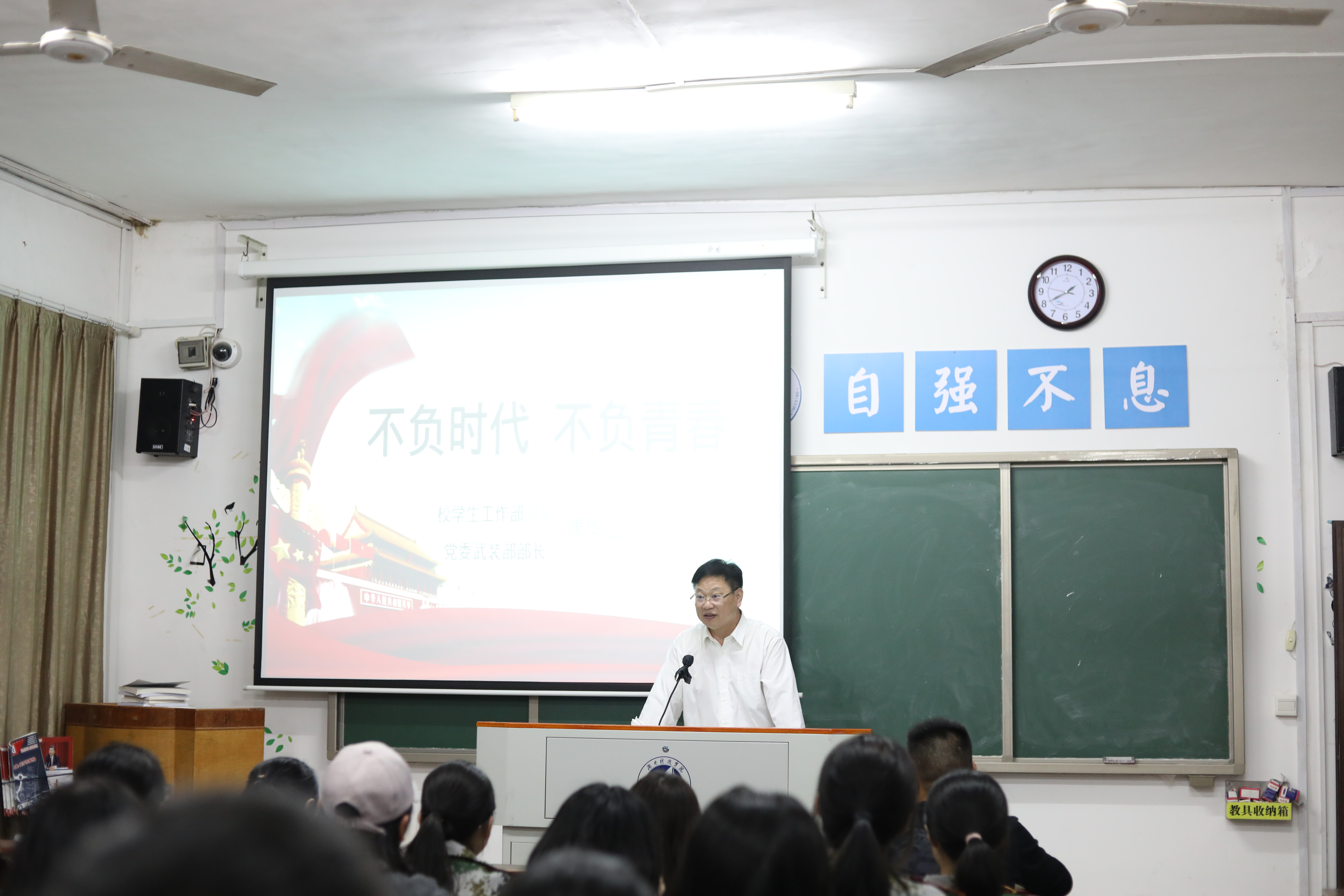 本网讯(通讯员谢松林)不负时代重托,不负青春韶华。10月13日晚,党委学生工作部、武装部部长唐华山受邀来我院鹤鸣楼501室做题为“不负时代,不负青春”的主题讲座。本次讲座由我院党总支副书记高丹主持,2020级全体新生参加。