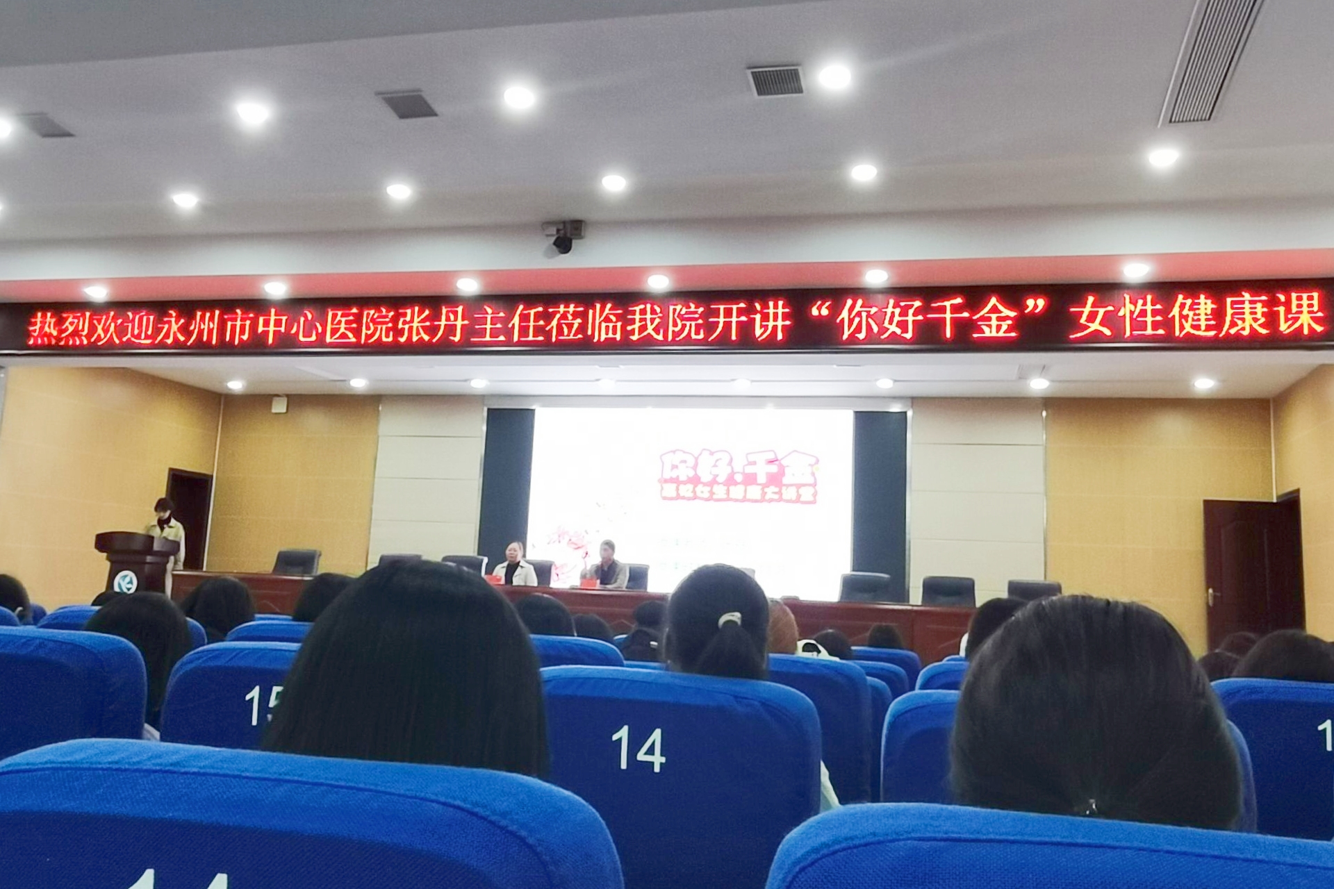 本网讯(记者刘畅李瑾申璨)为进一步提高我院女生自身保护意识,11月8日晚七点,由永州市中心医院与千金药业集团承办的题为“你好,千金”的主题讲座在潇湘大讲堂举行。讲座由永州市中心医院的张丹医生主讲,传媒学院与化生学院八百余名同学共同聆听。