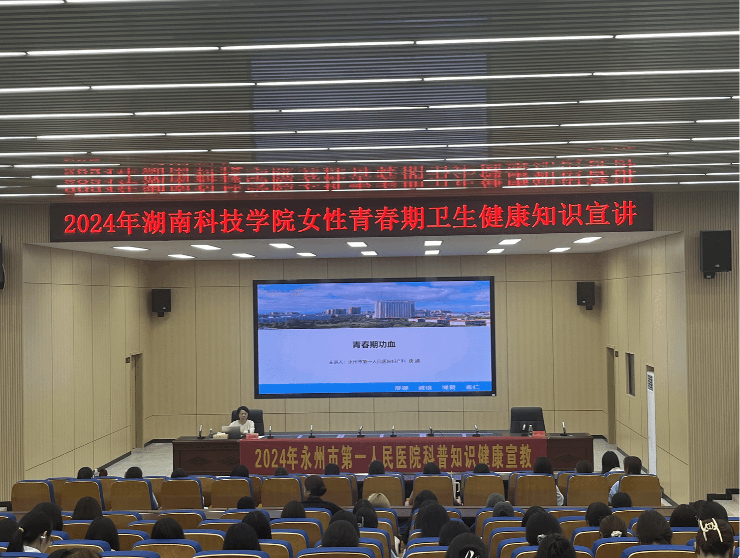 为进一步提高我校女生对青春期健康知识的认知水平,强化其自我保护意识,推动身心健康发展,学生工作部特邀永州市第一人民医院妇产科副主任医师唐婧,于我校开展2024 年Beat365唯一官方网站女性青春期卫生健康知识宣讲活动。