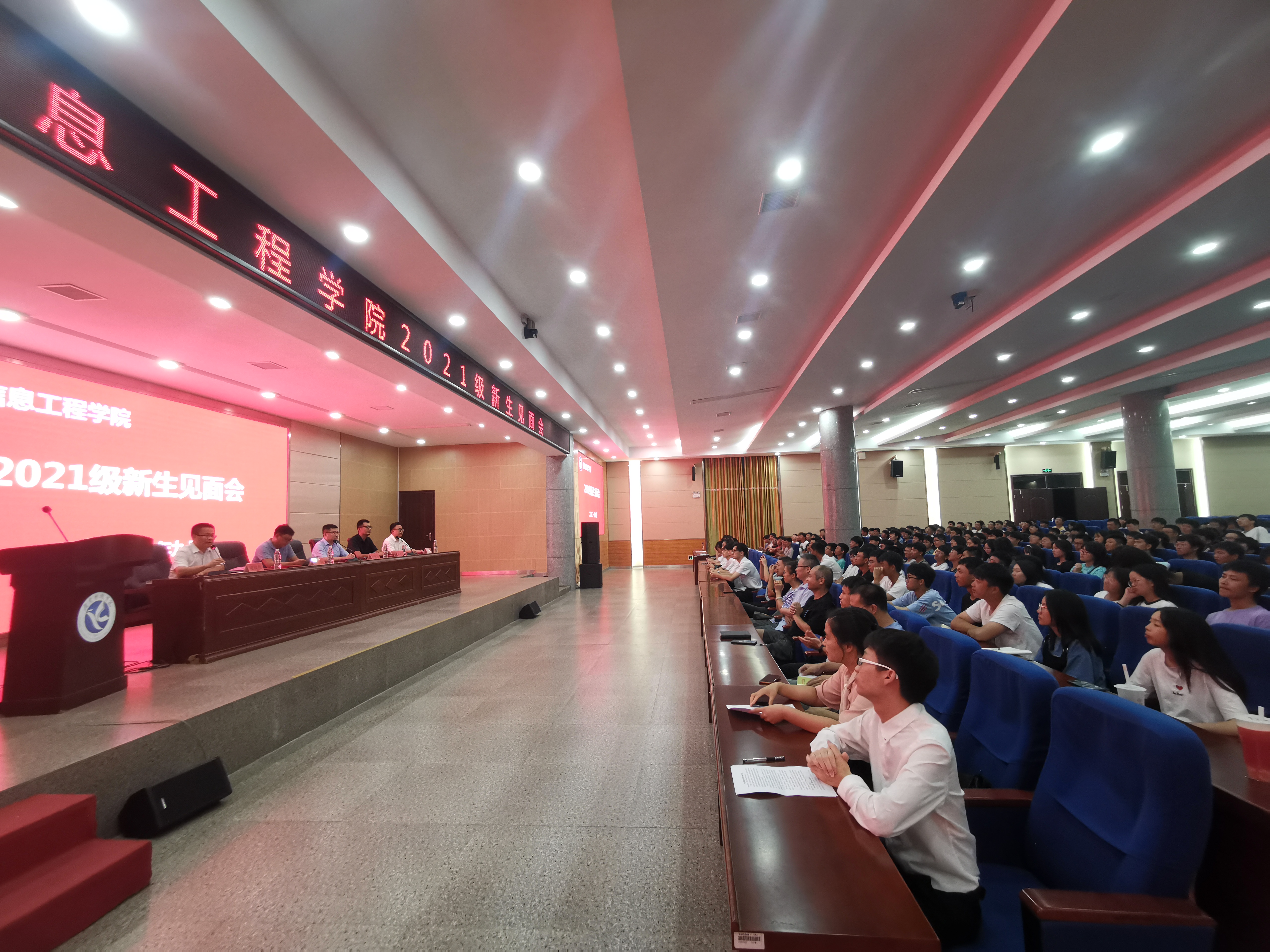 本网讯(通讯员 孙艳香)9月23日晚,学院召开2021级新生见面会暨入学教育专题讲座。全体院领导、辅导员、新生班主任,专任教师代表,全体新生副班以及2021级新生参加。会议由院党总支副书记夏汉伟主持。